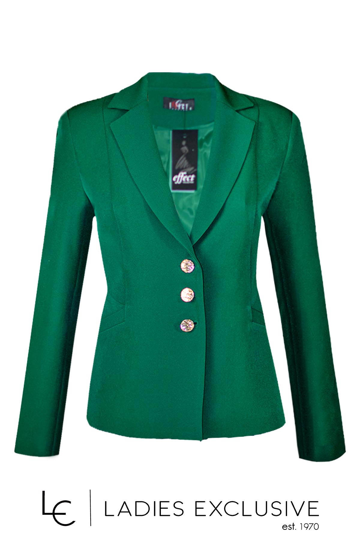 EFFECT Σακάκι πράσινο κρεπ με χρυσά κουμπιά. ΔΙΝΕΤΑΙ ΜΟΝΟ ΣΑΝ ΣΕΤ με το παντελόνι με κωδικό 25-501-2734.04.