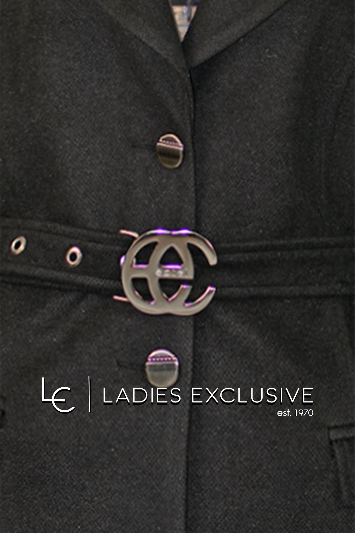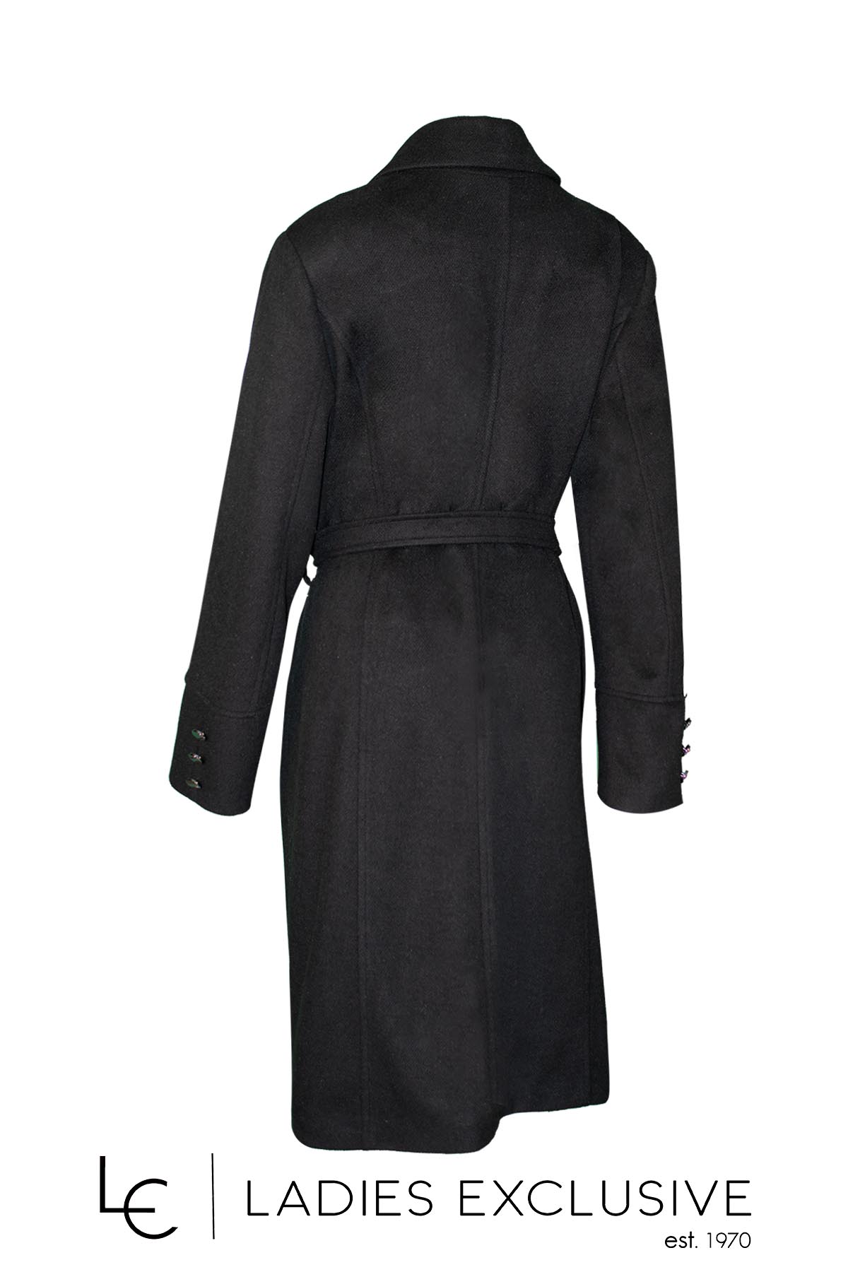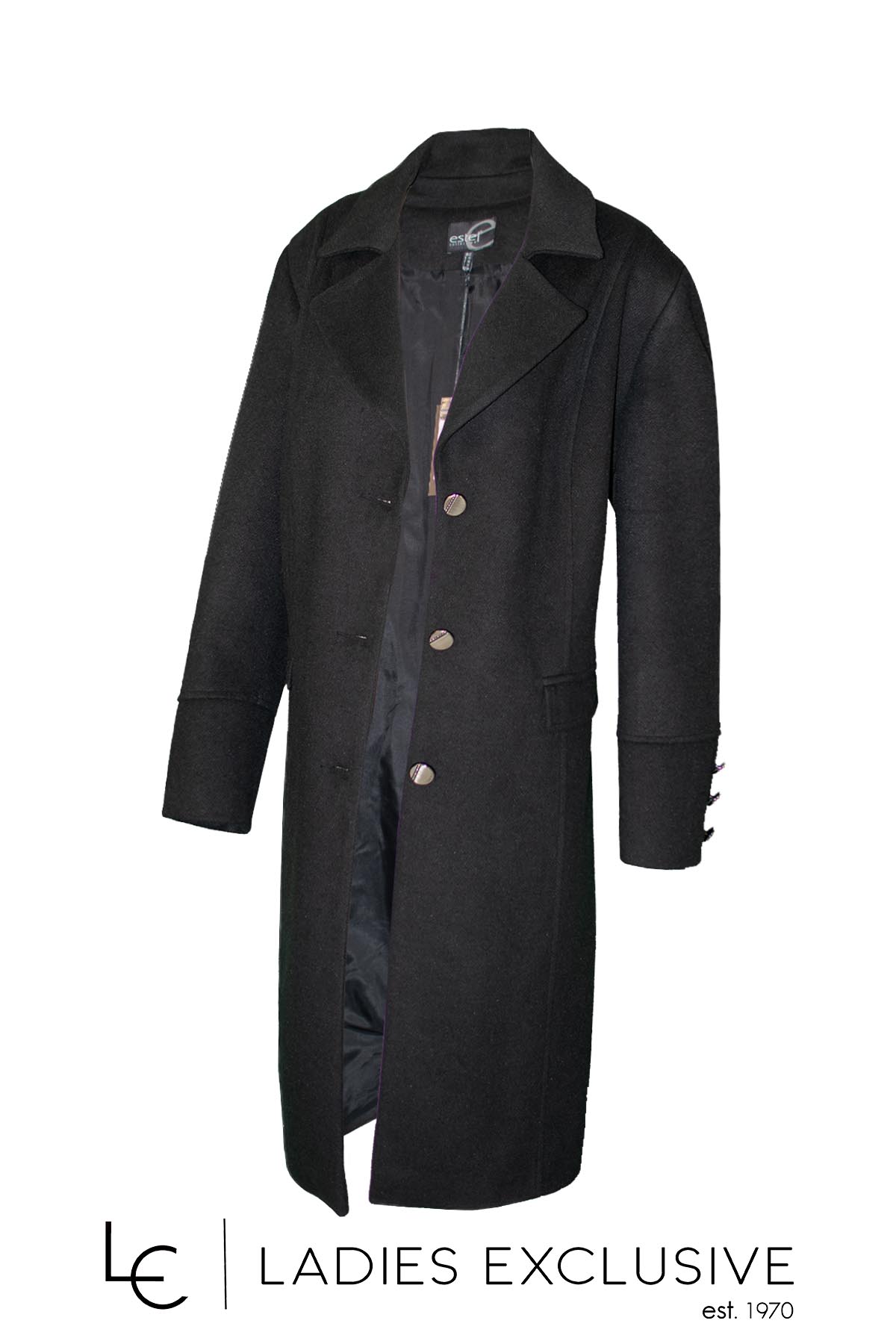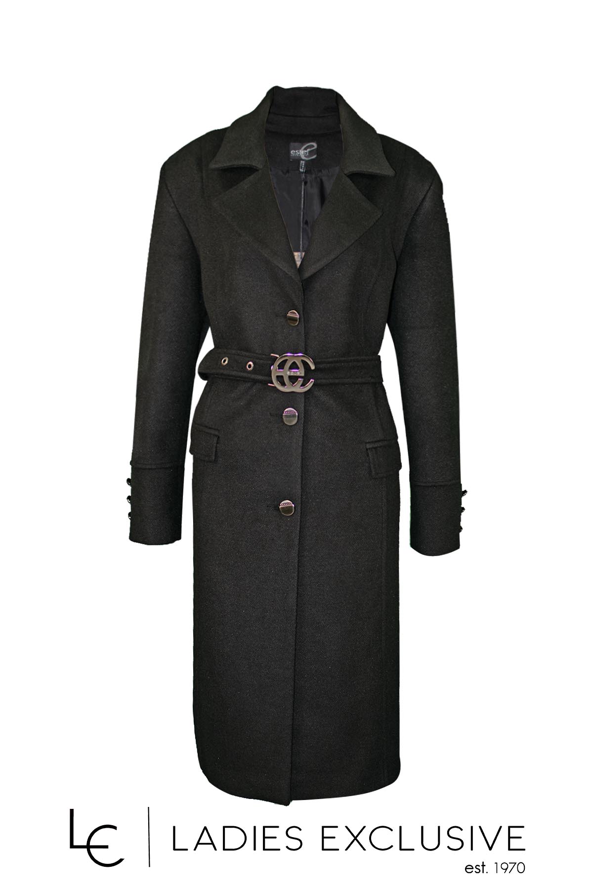ESTEL Παλτό μαύρο μακρύ με ζώνη και τσέπες.