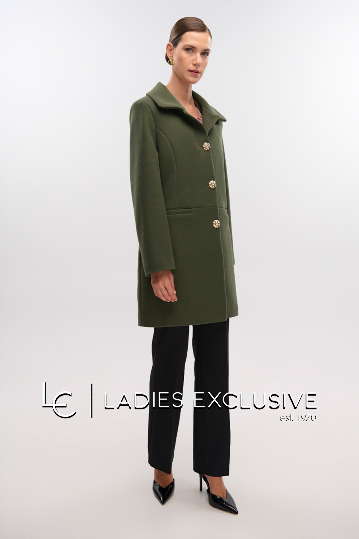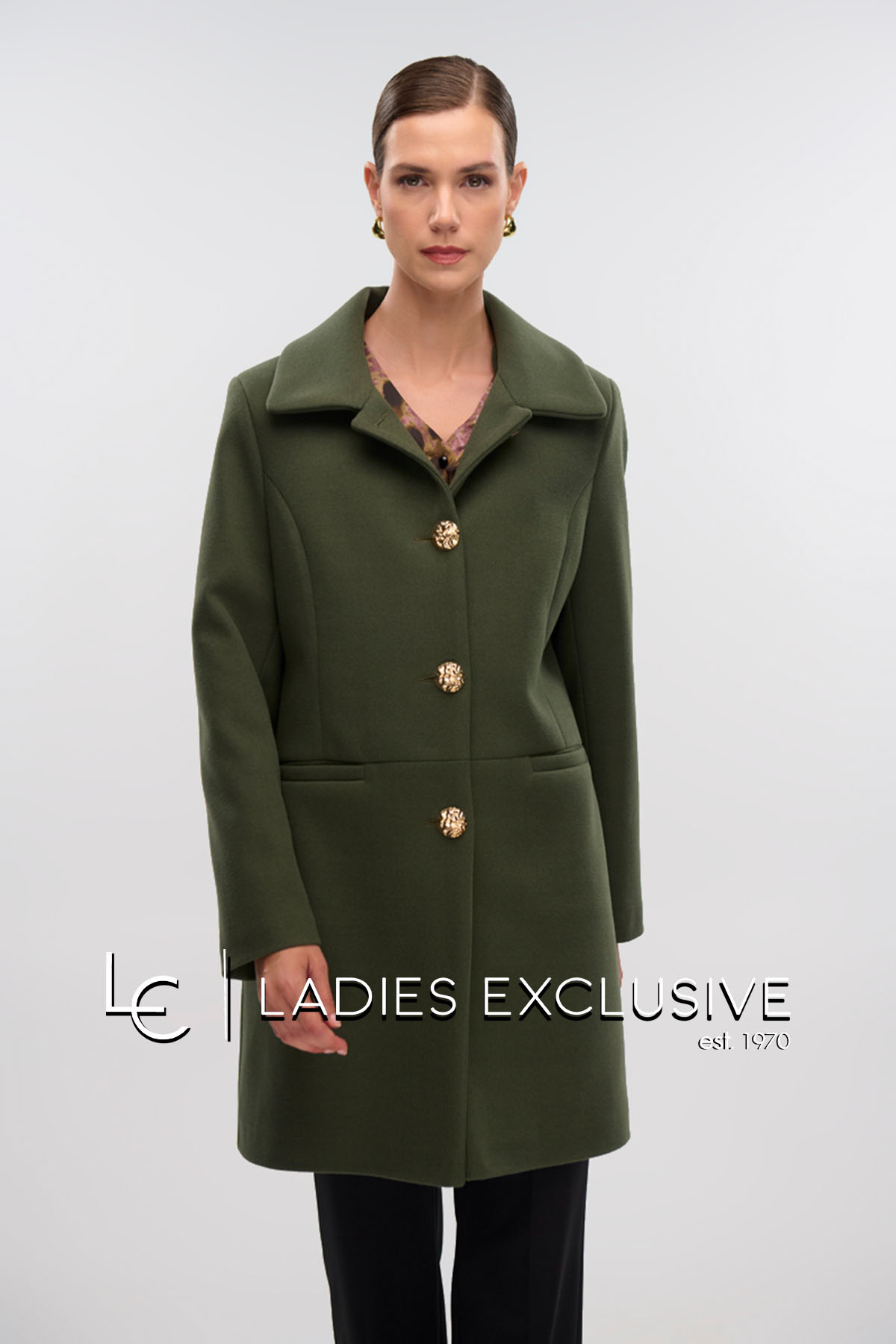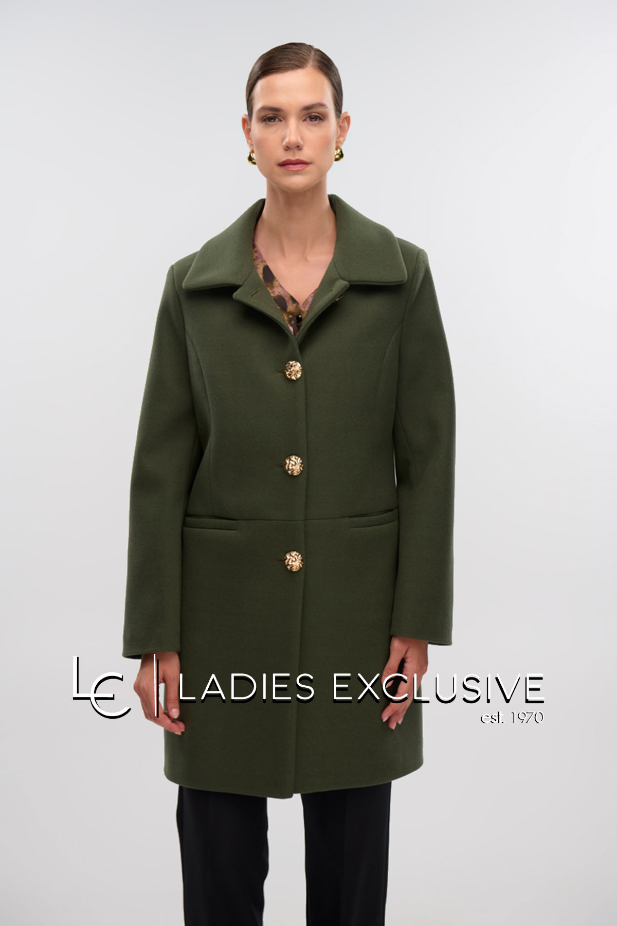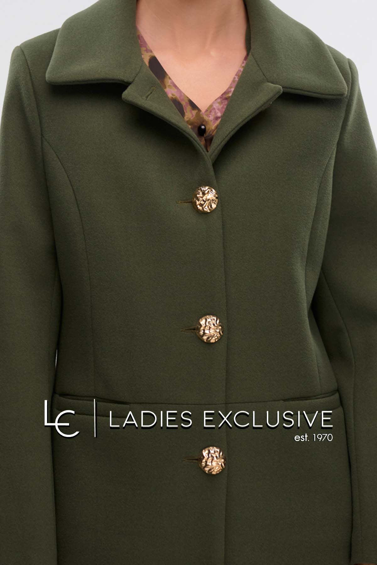 FIBES Ημίπαλτό λαδί βελούρ με χρυσα κουμπιά και τσέπες.