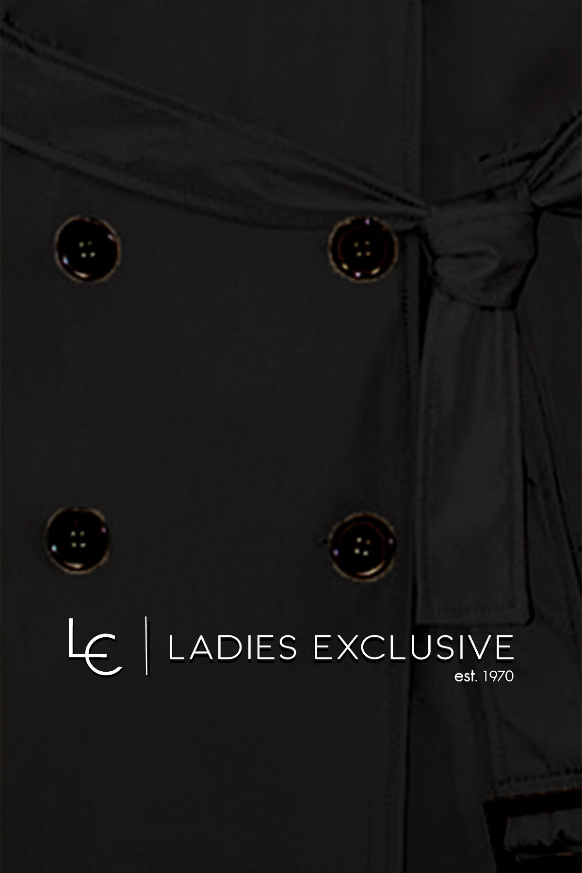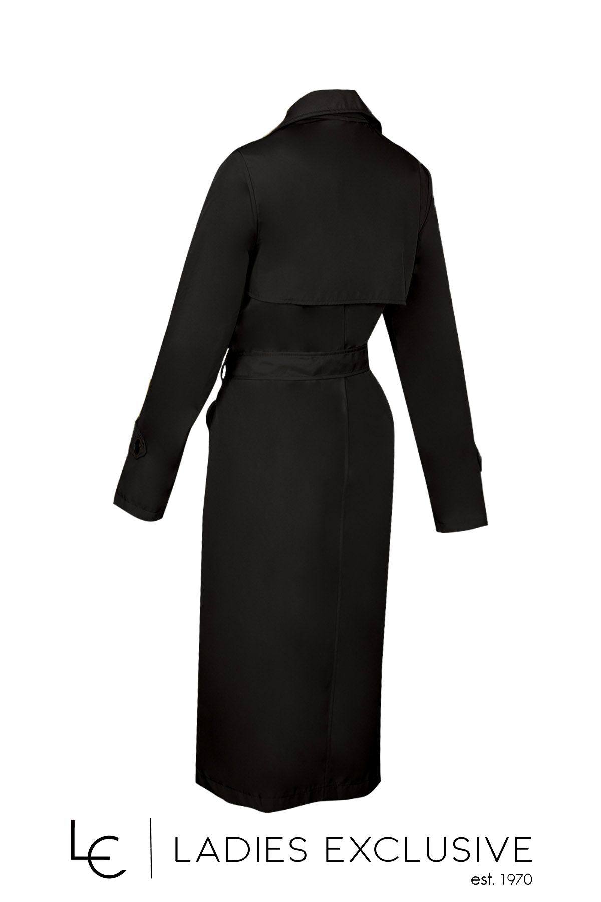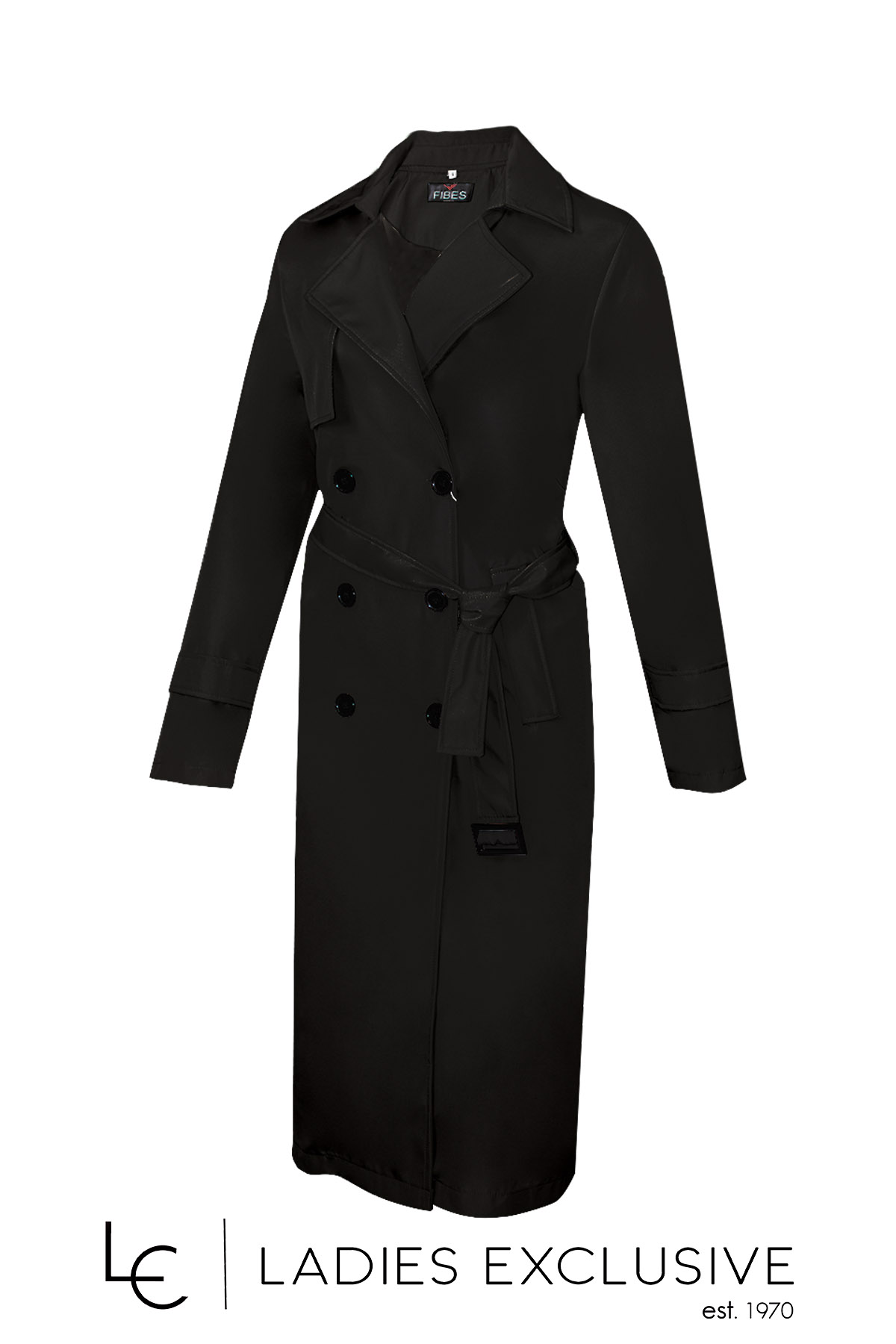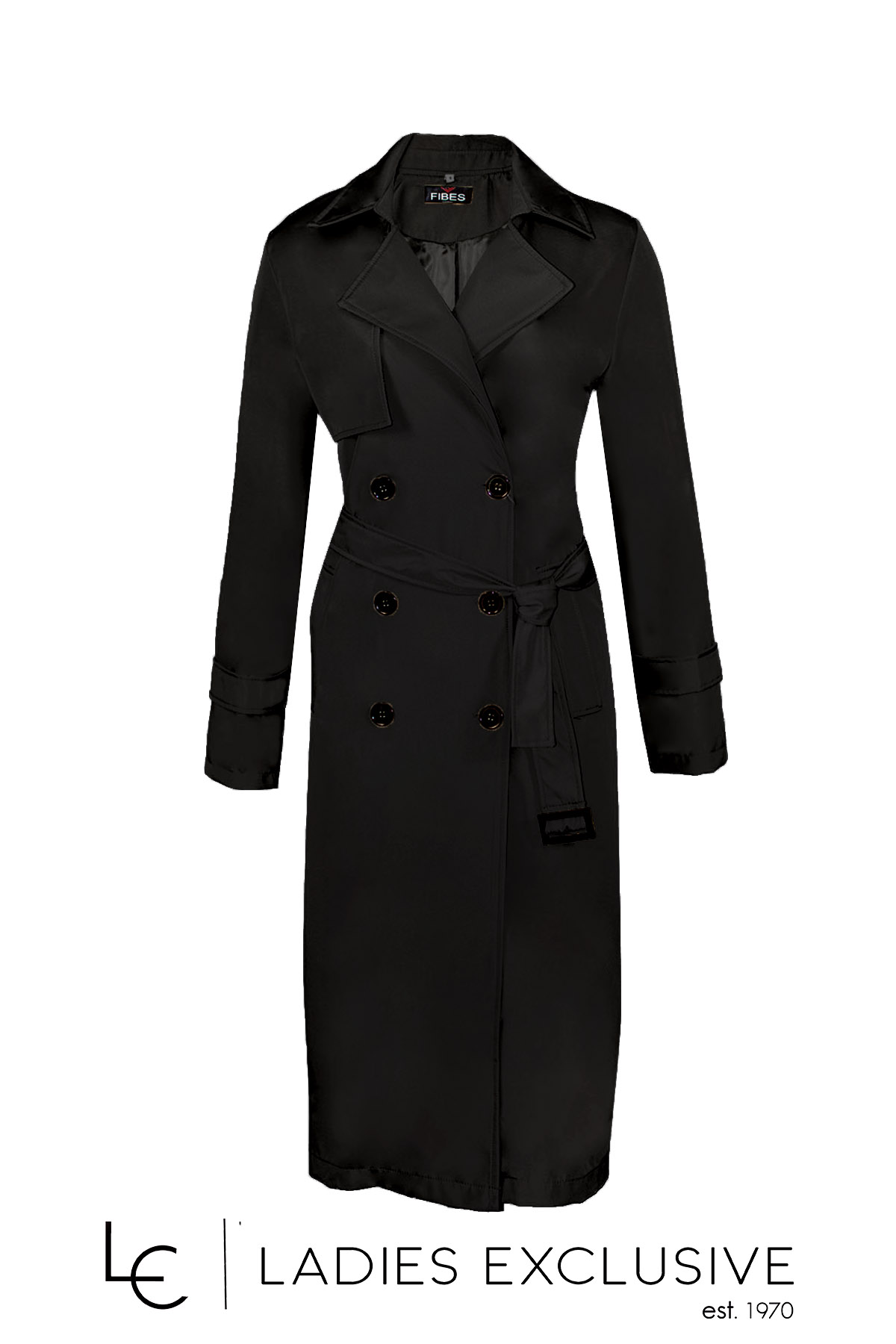 FIBES Καμπαρντίνα μαύρη μακριά με σταυρωτό κούμπωμα και ζώνη.
