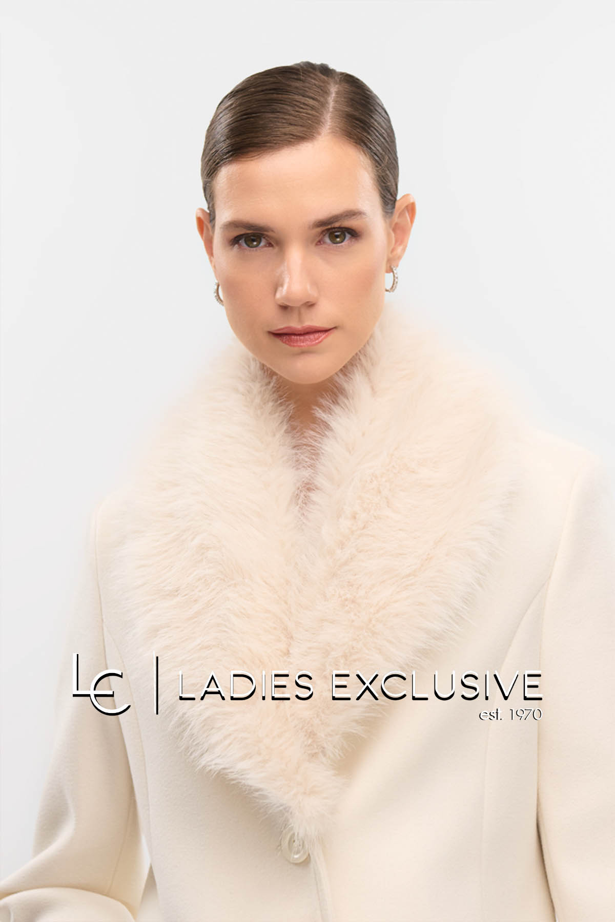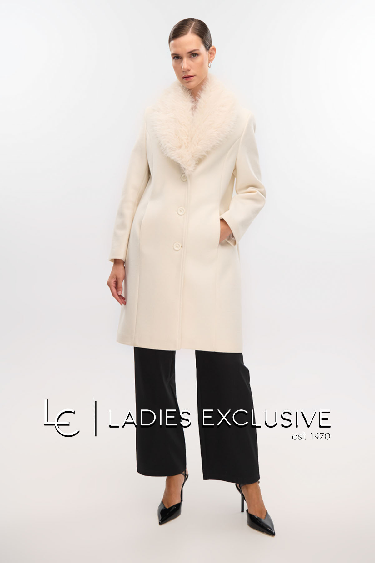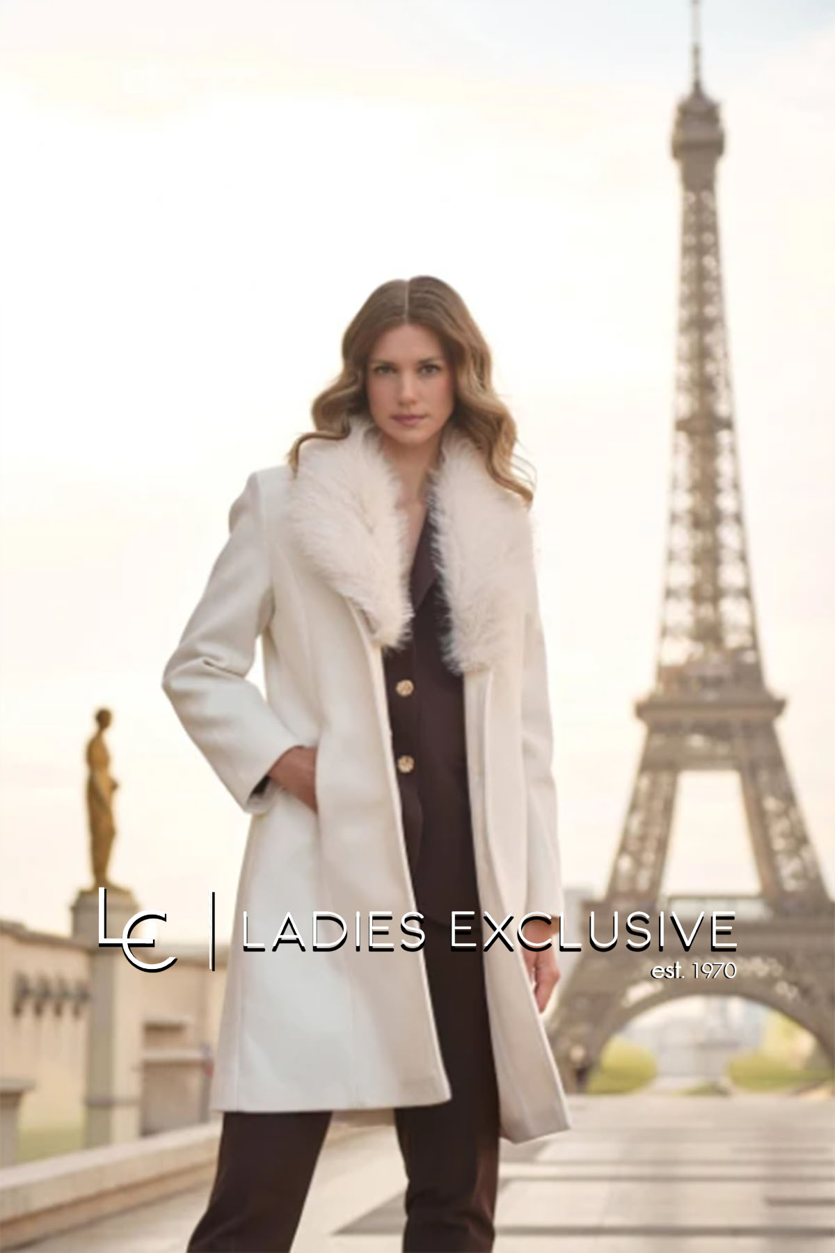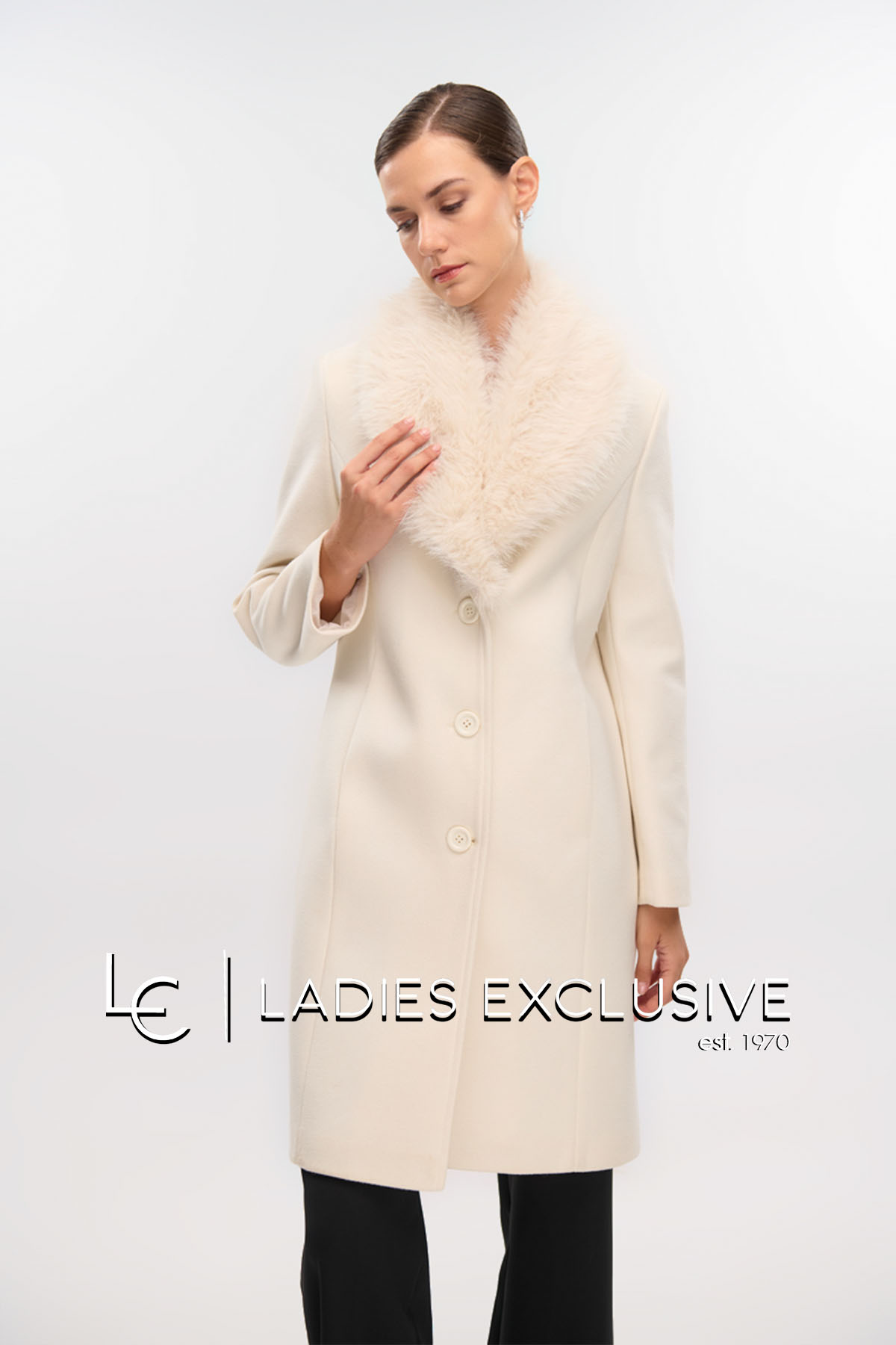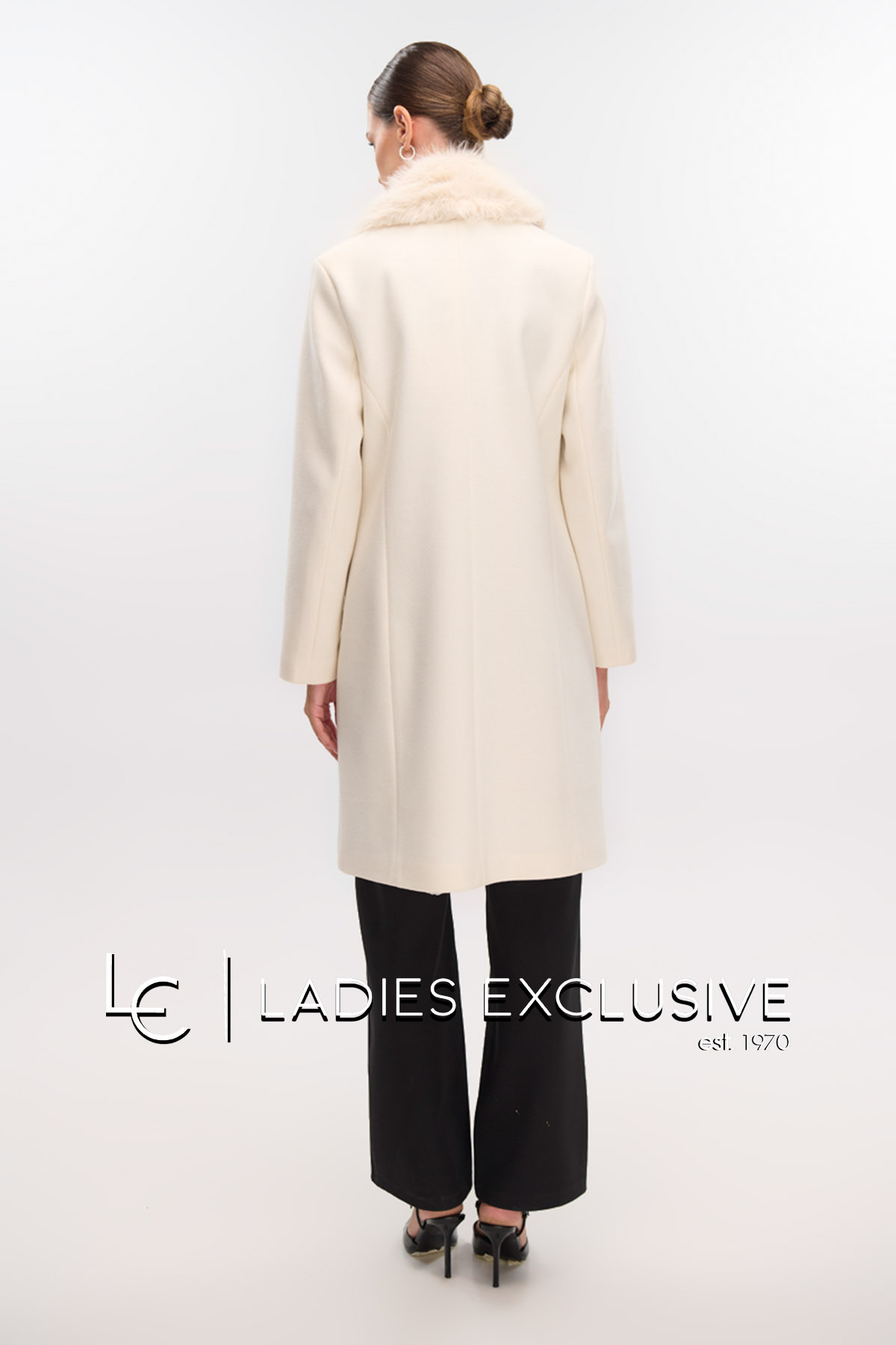 FIBES Παλτό εκρού με γούνινο γιακά που αφαιρείται.
