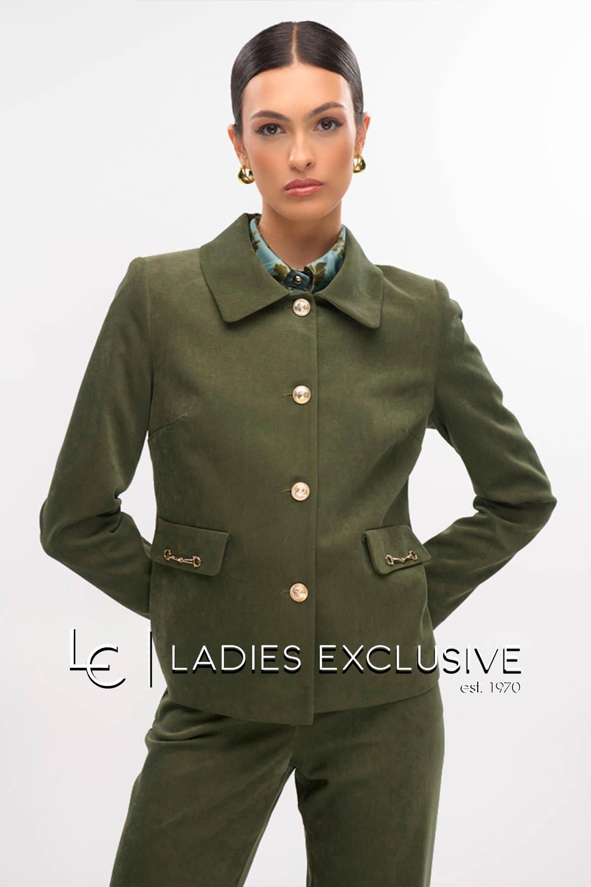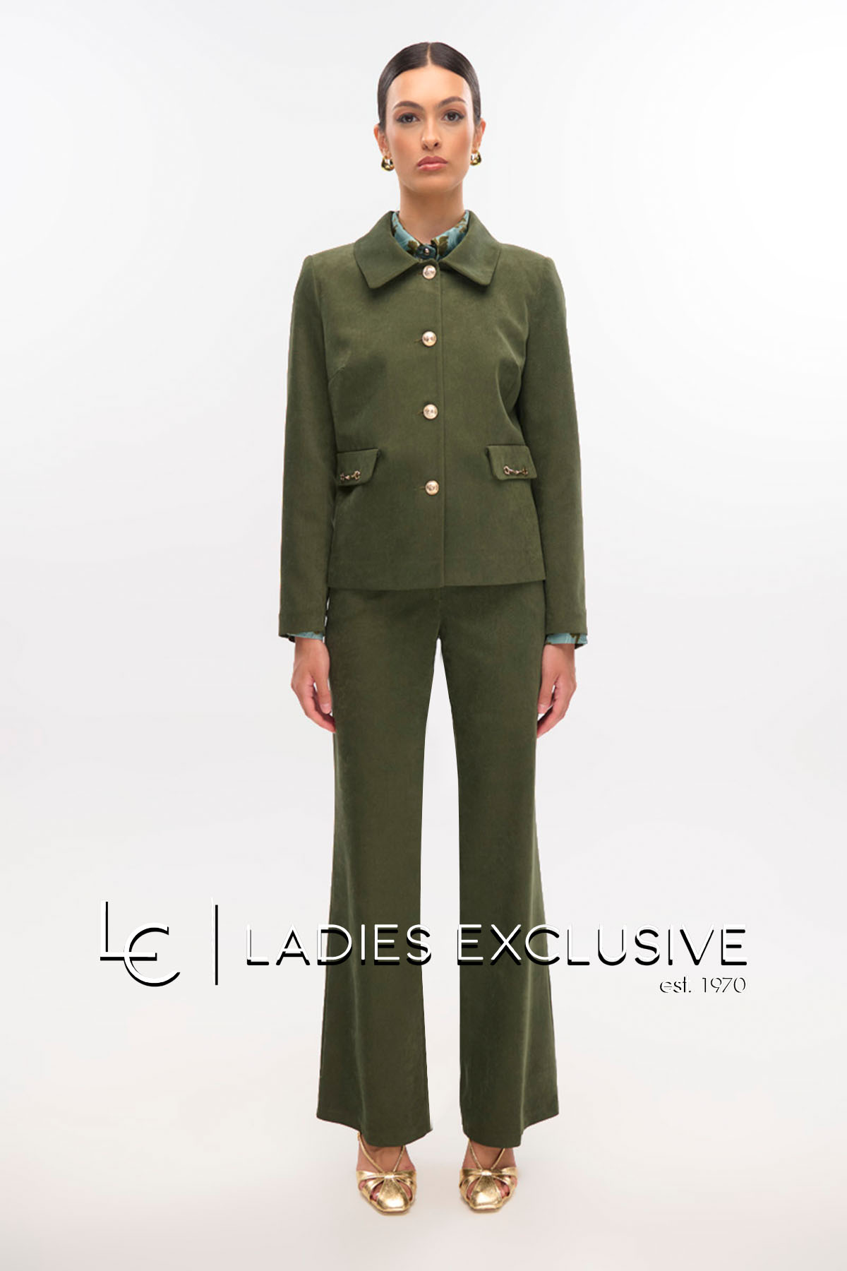 FIBES Σακάκι πράσινο κοτλέ χιλιόριγο με μικρά πέτα και χρυσές λεπτομέρειες στις τσέπες. ΔΙΝΕΤΑΙ ΜΟΝΟ ΣΑΝ ΣΕΤ με το παντελόνι με κωδικό 04-8071.04.