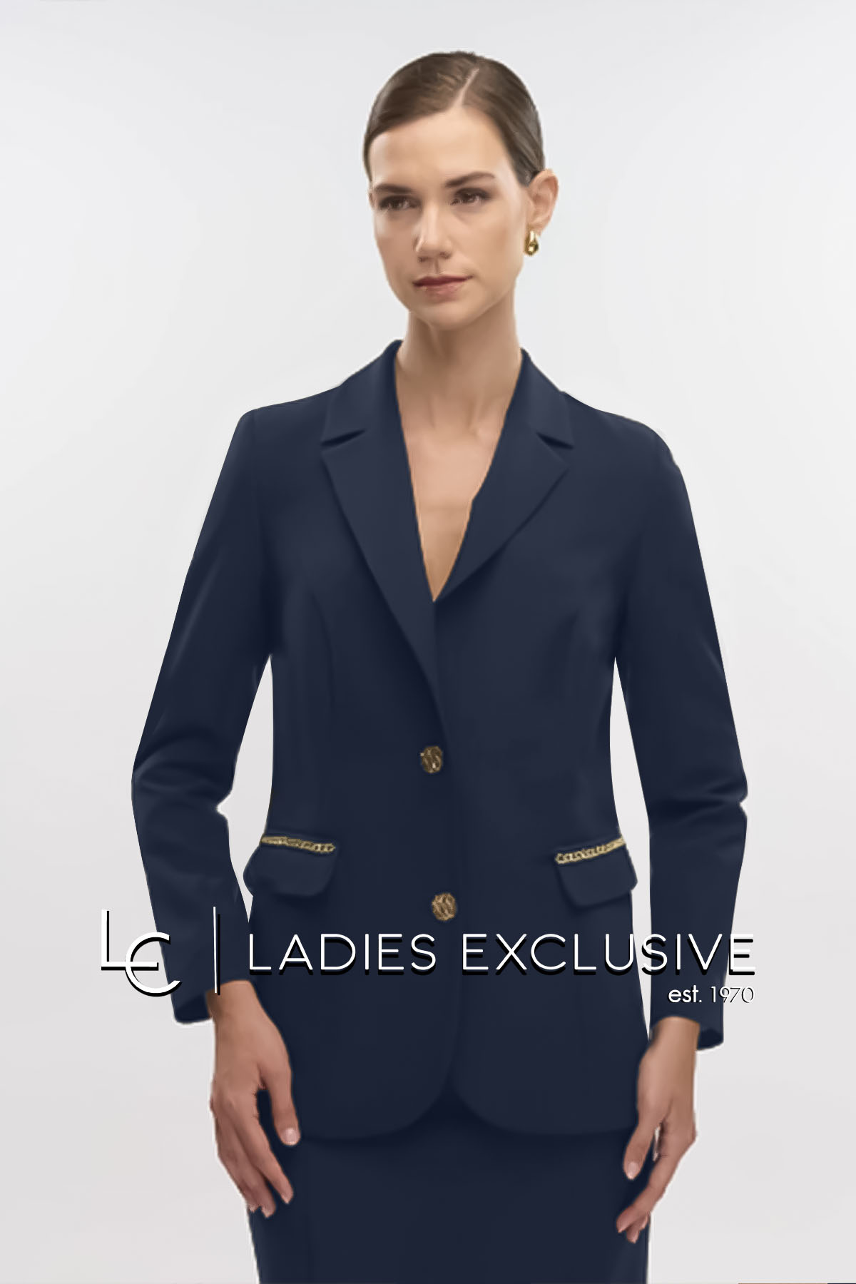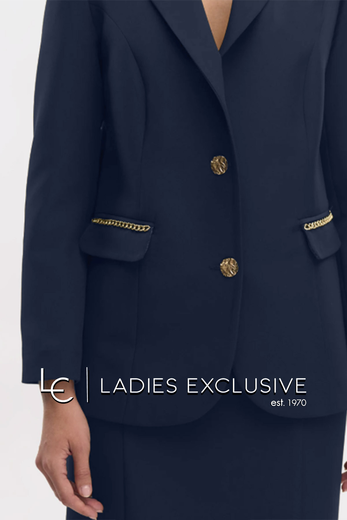 FIBES Σακάκι μπλε κρεπ με αλυσίδες στις τσέπες. ΔΙΝΕΤΑΙ ΜΟΝΟ ΣΑΝ ΣΕΤ με το παντελόνι με κωδικό 04-8063.03.