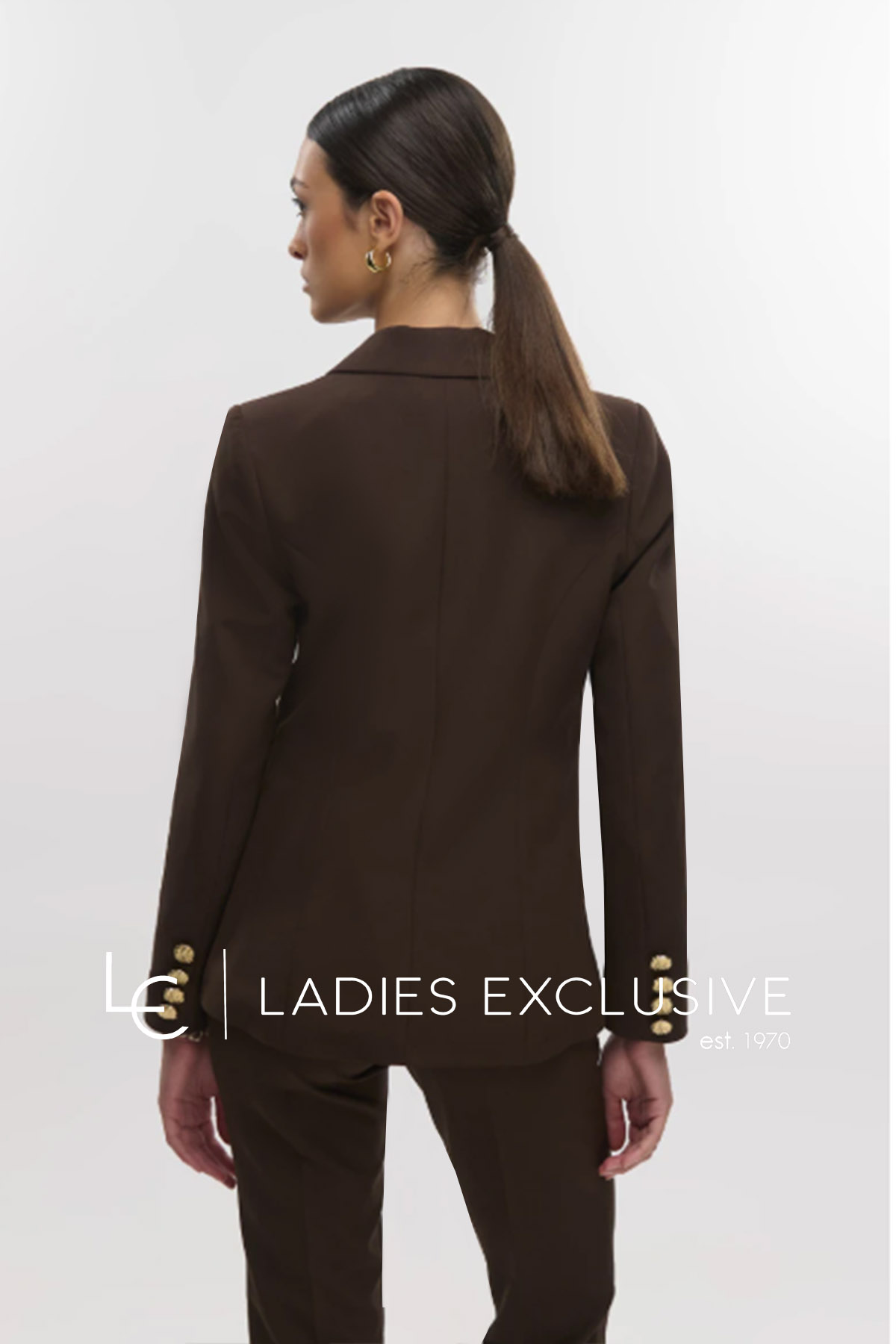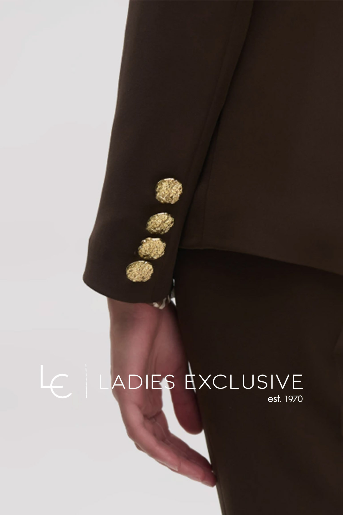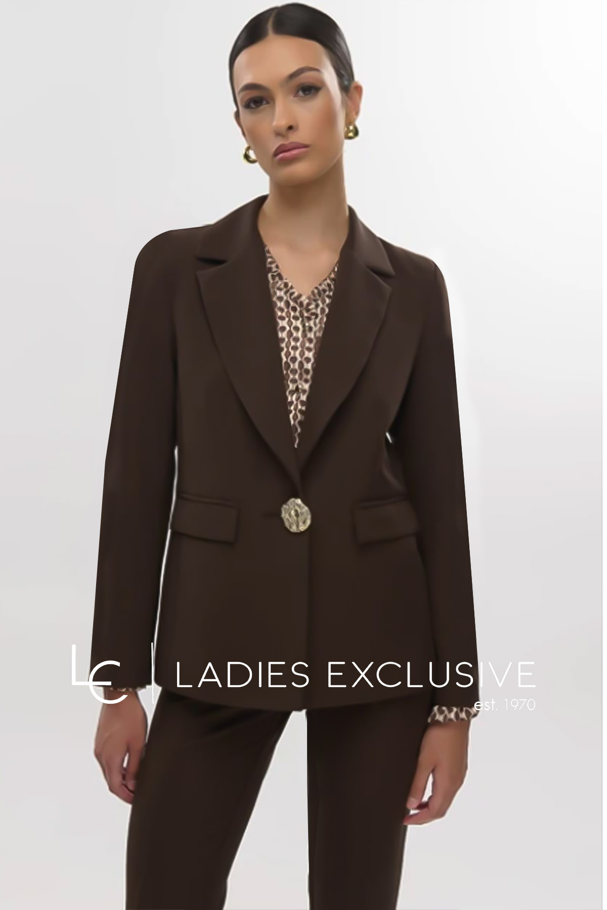 FIBES Σακάκι καφέ κρεπ με εντυπωσιακό κουμπί. ΔΙΝΕΤΑΙ ΜΟΝΟ ΣΑΝ ΣΕΤ με το παντελόνι με κωδικό 04-8062.08.