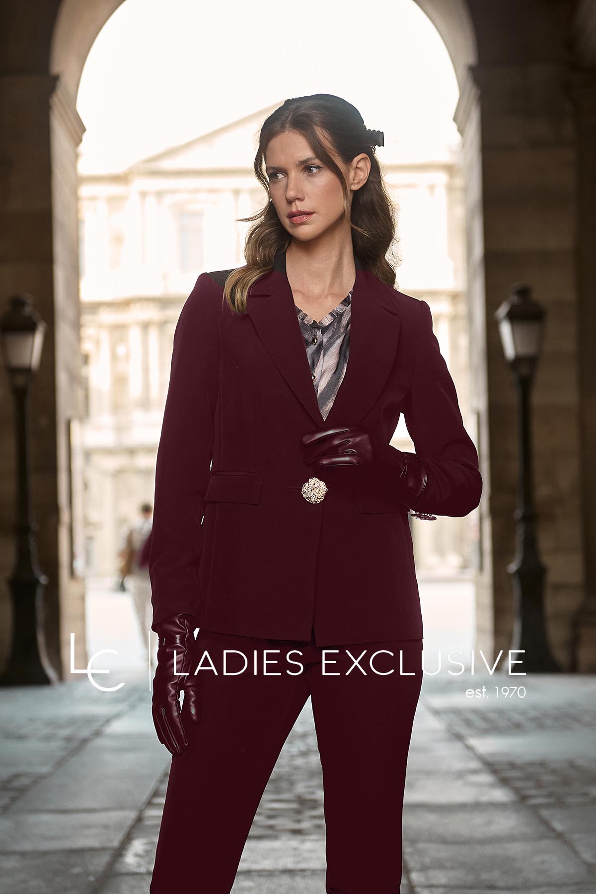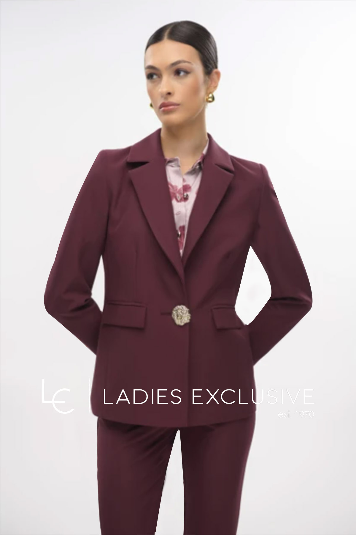 FIBES Σακάκι μπορντώ κρεπ με εντυπωσιακό κουμπί. ΔΙΝΕΤΑΙ ΜΟΝΟ ΣΑΝ ΣΕΤ με το παντελόνι με κωδικό 04-8062.20.