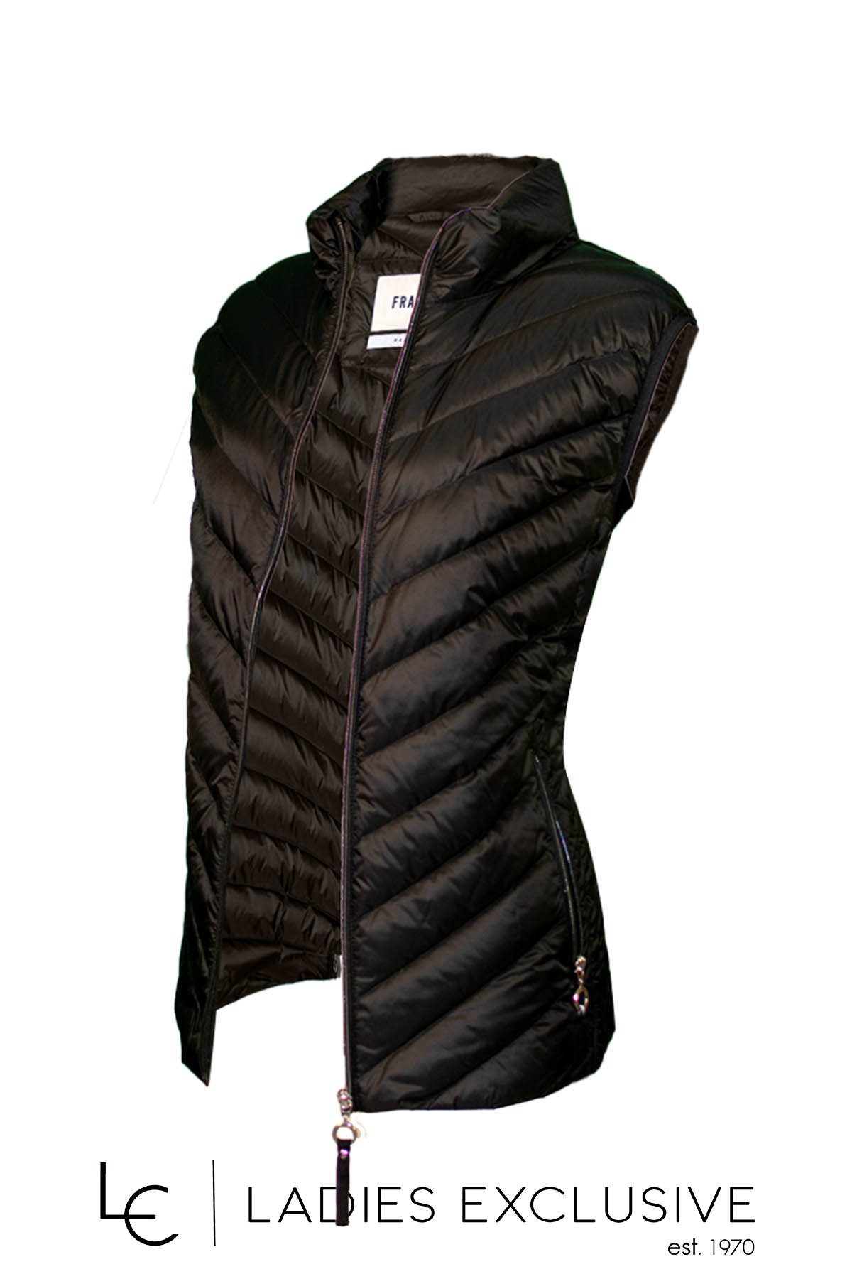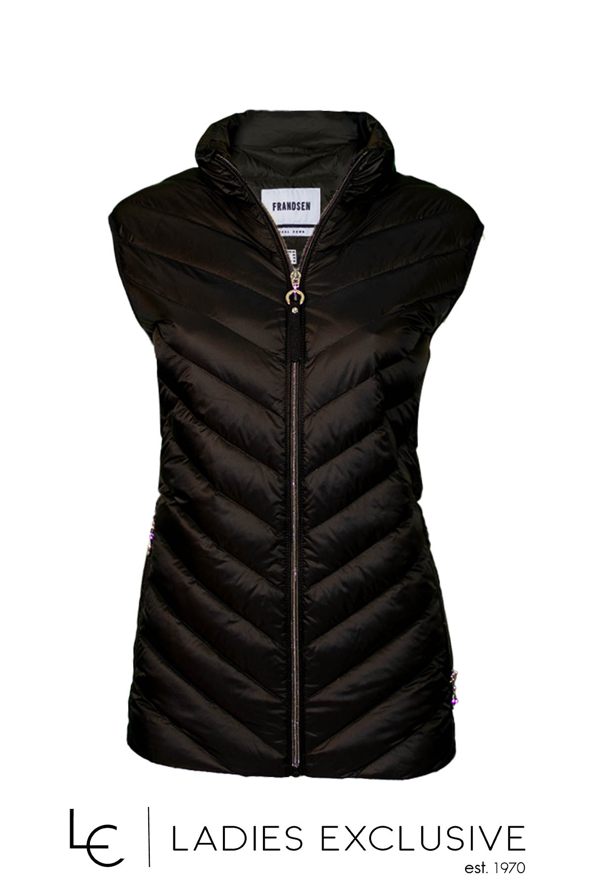 FRANDSEN Μπουφάν μαύρο αμάνικο καπιτονέ, που κλείνει με φερμουάρ.