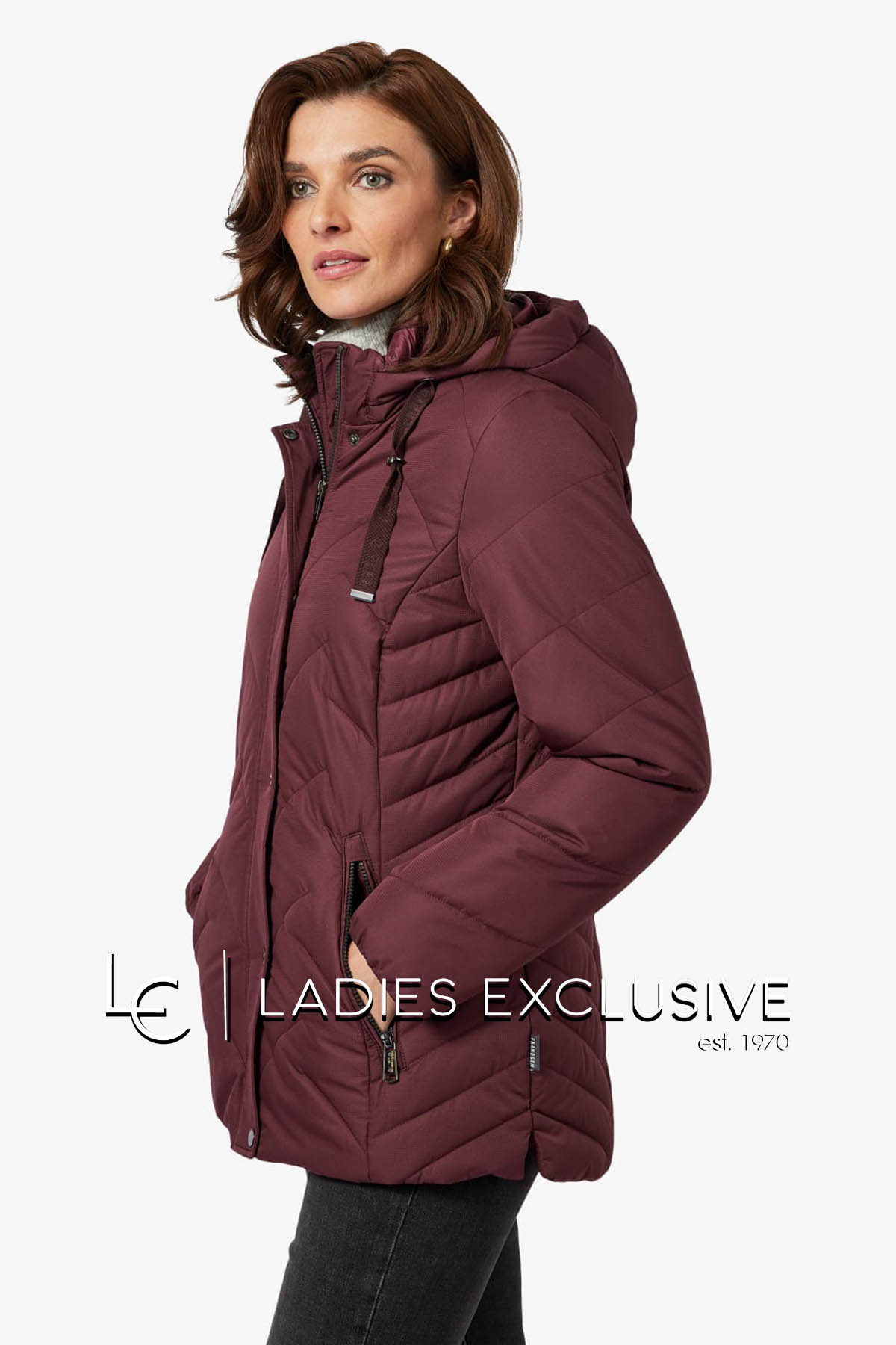 FRANDSEN Μπουφάν μπορντώ καπιτονέ με κουκούλα που αφαιρείται και τσέπες με φερμουάρ.