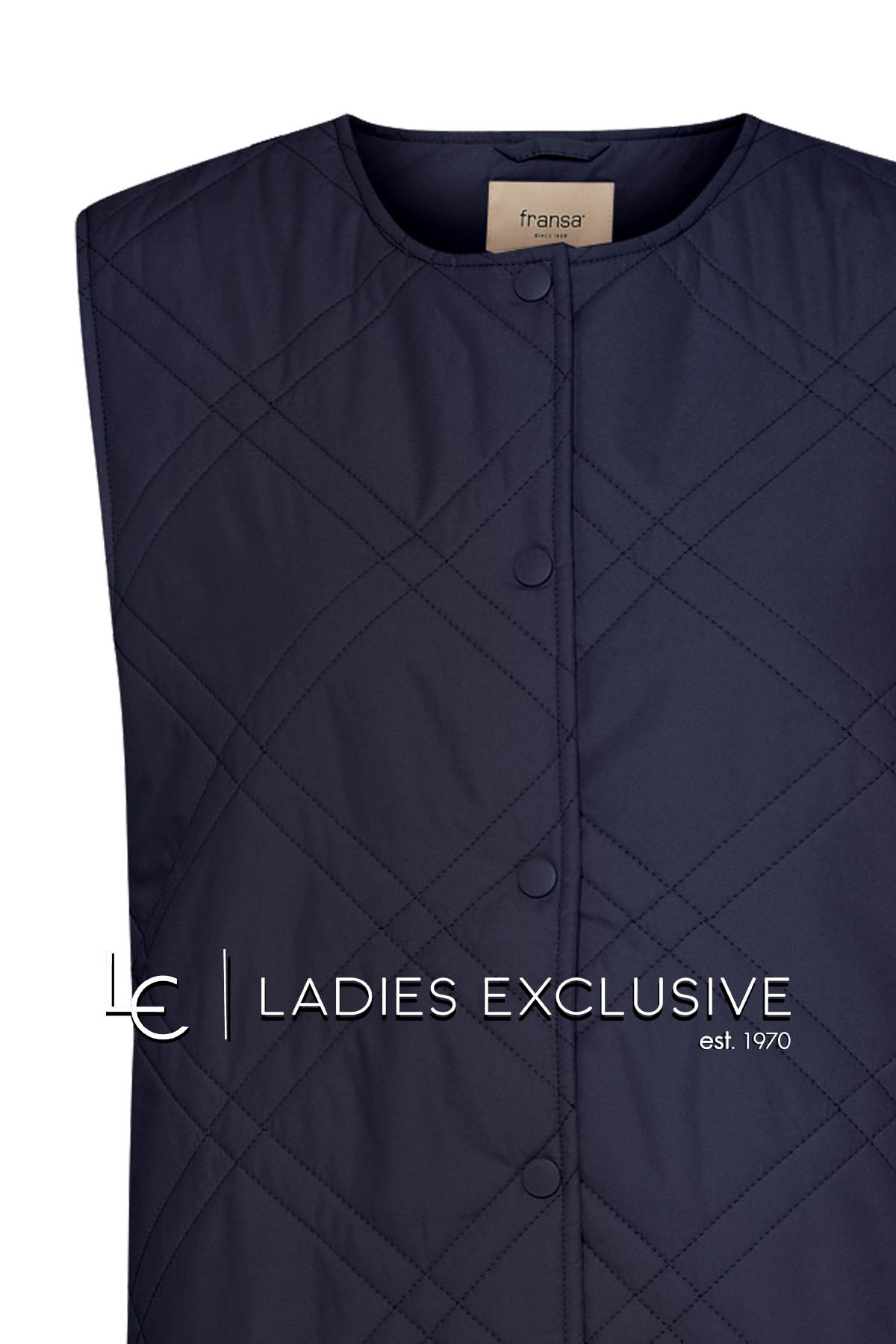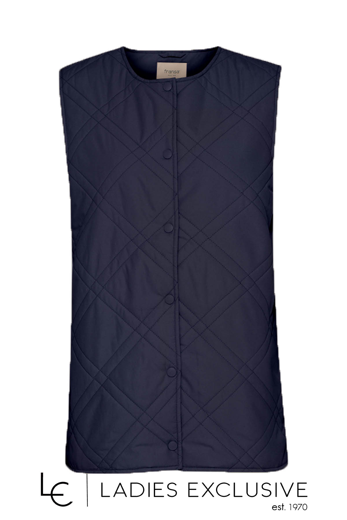 FRANSA Μπουφάν μπλε αμάνικο καπιτονέ λεπτό, που κλείνει με τρουκς.