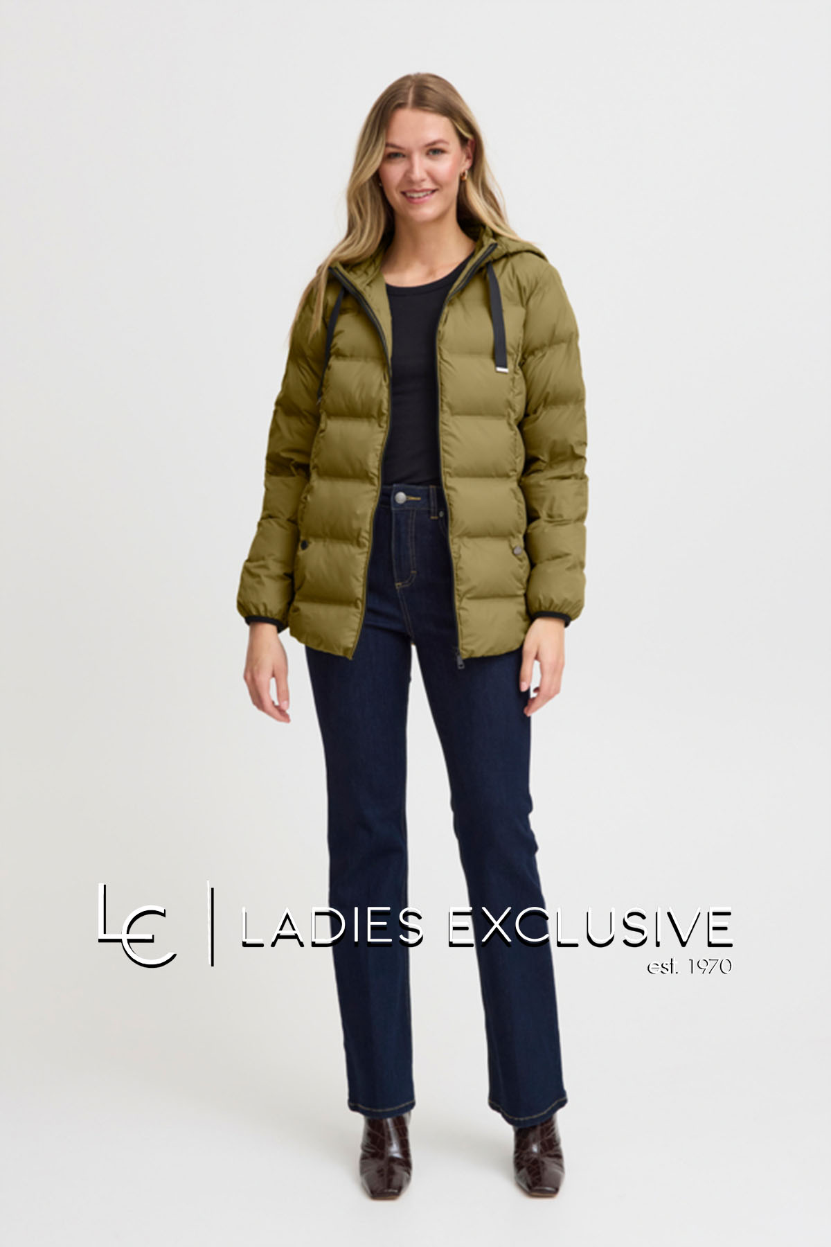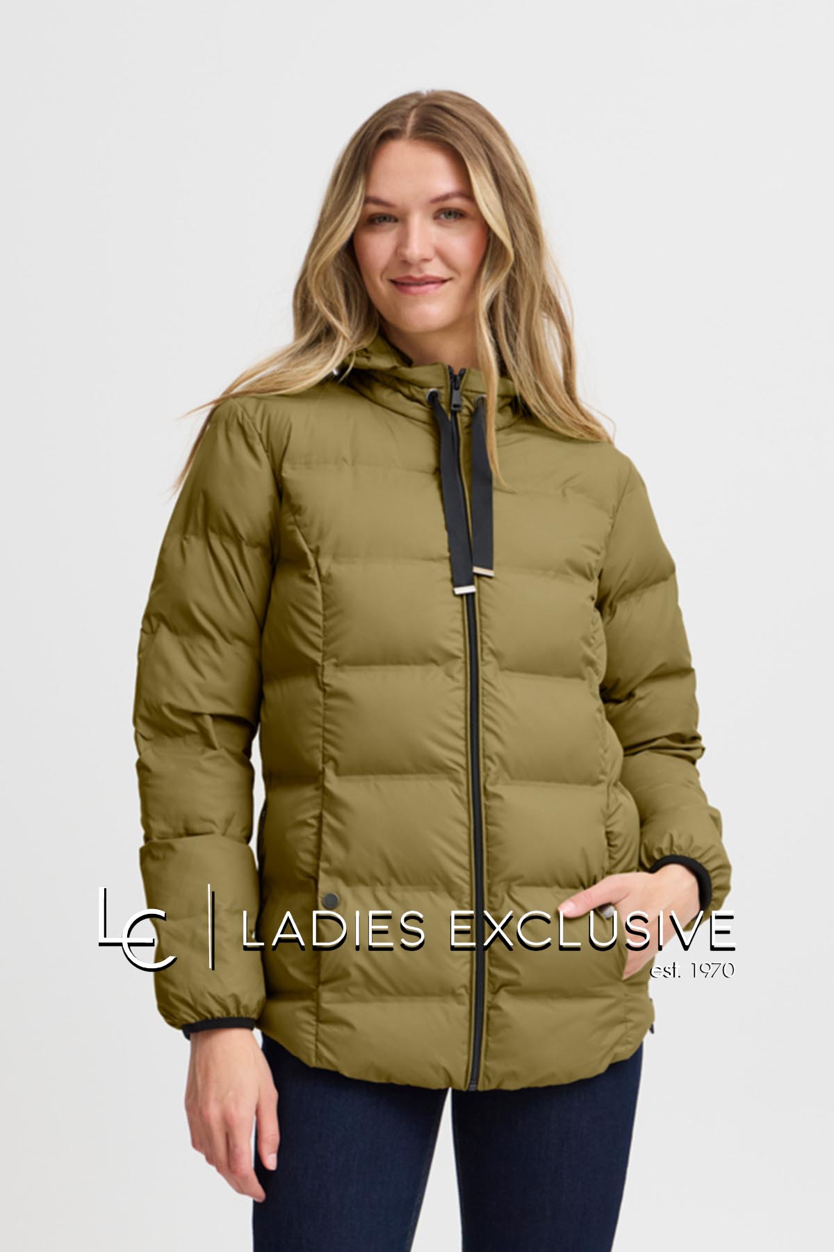 FRANSA Μπουφάν λαδί καπιτονέ με κουκούλα που αφαιρείται κα ανοίγματα στο πλάι με φερμουάρ.