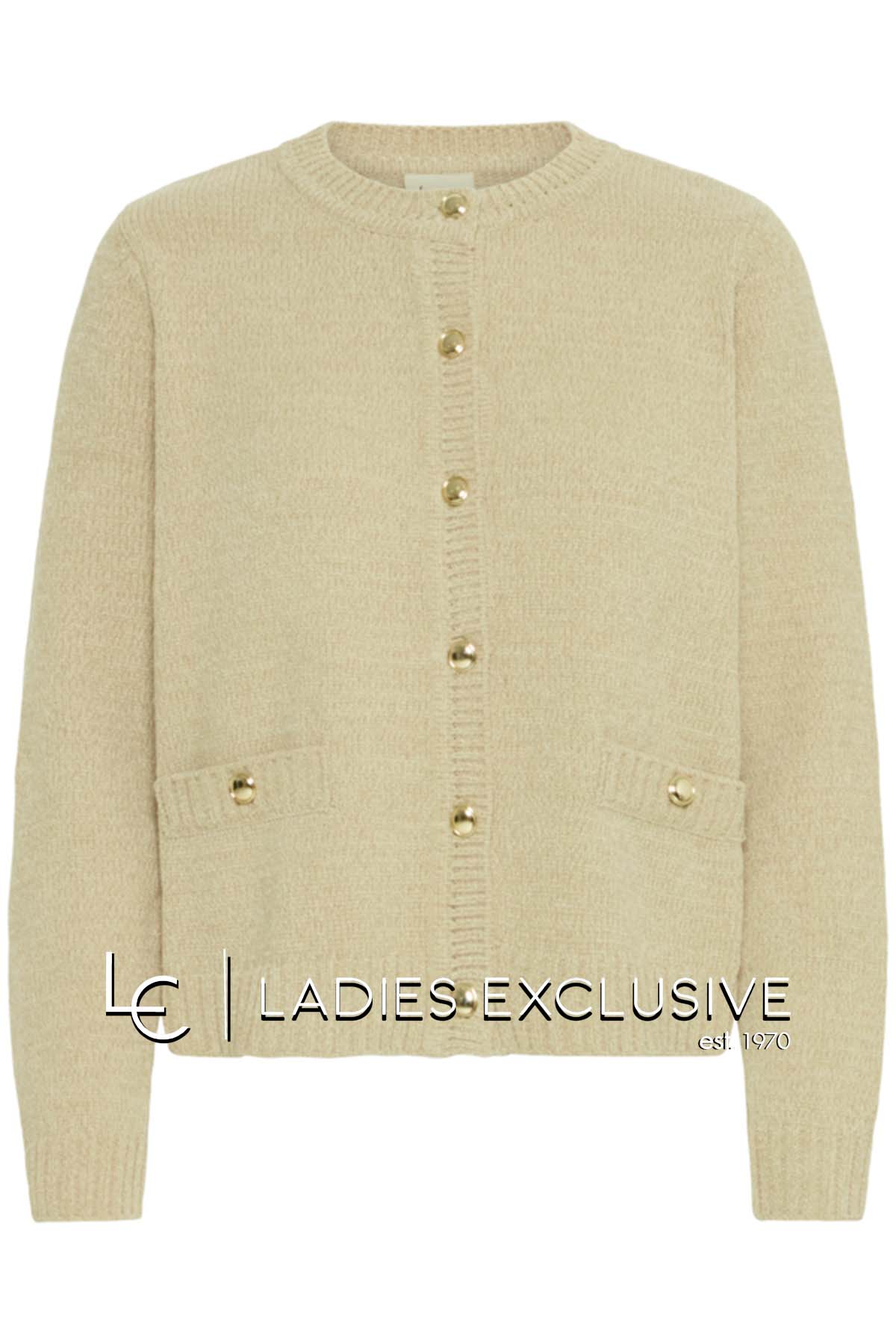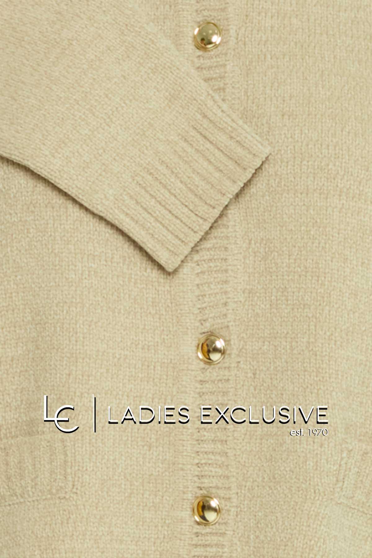 FRANSA Ζακέτα μπεζ σενίλ με χρυσά κουμπιά.