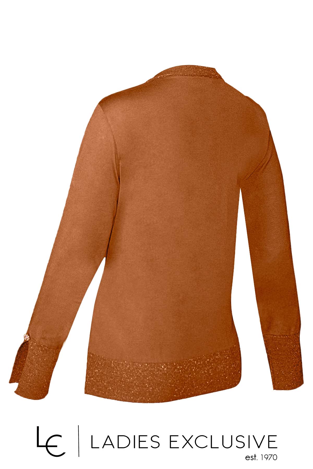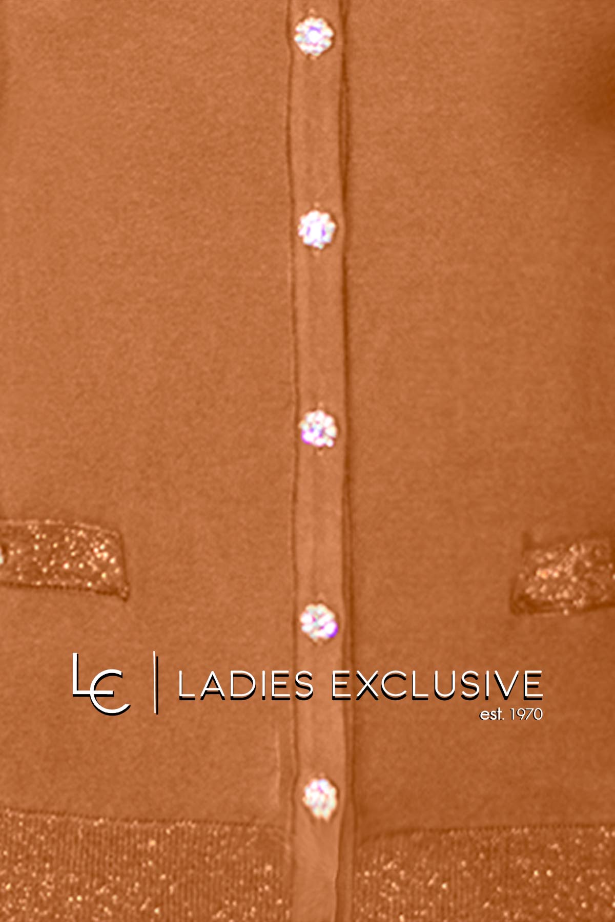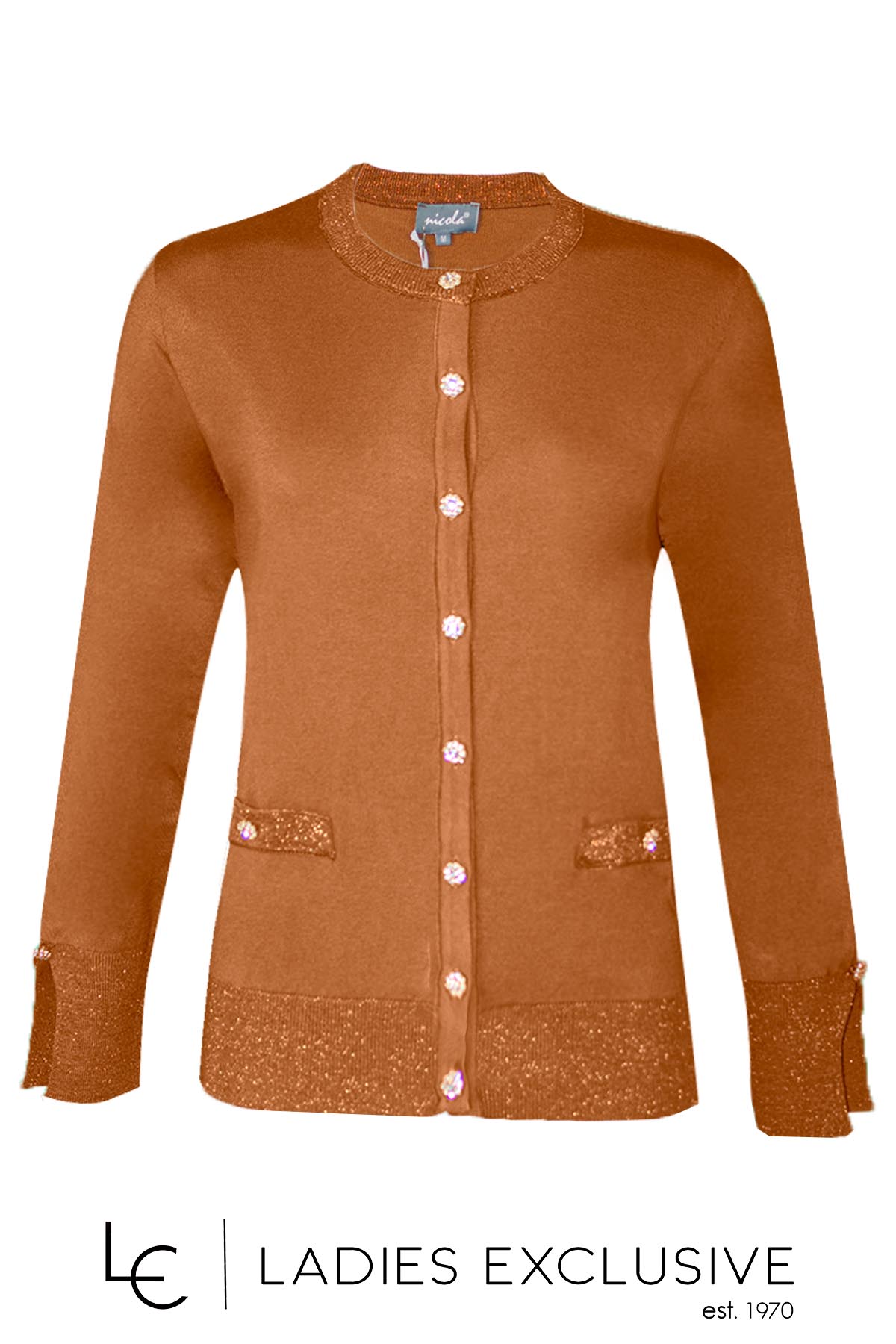 NICOLA Ζακέτα καμηλό μονόχρωμη με ιδιαίτερα κουμπιά λουλούδια και λούρεξ τελειώματα.