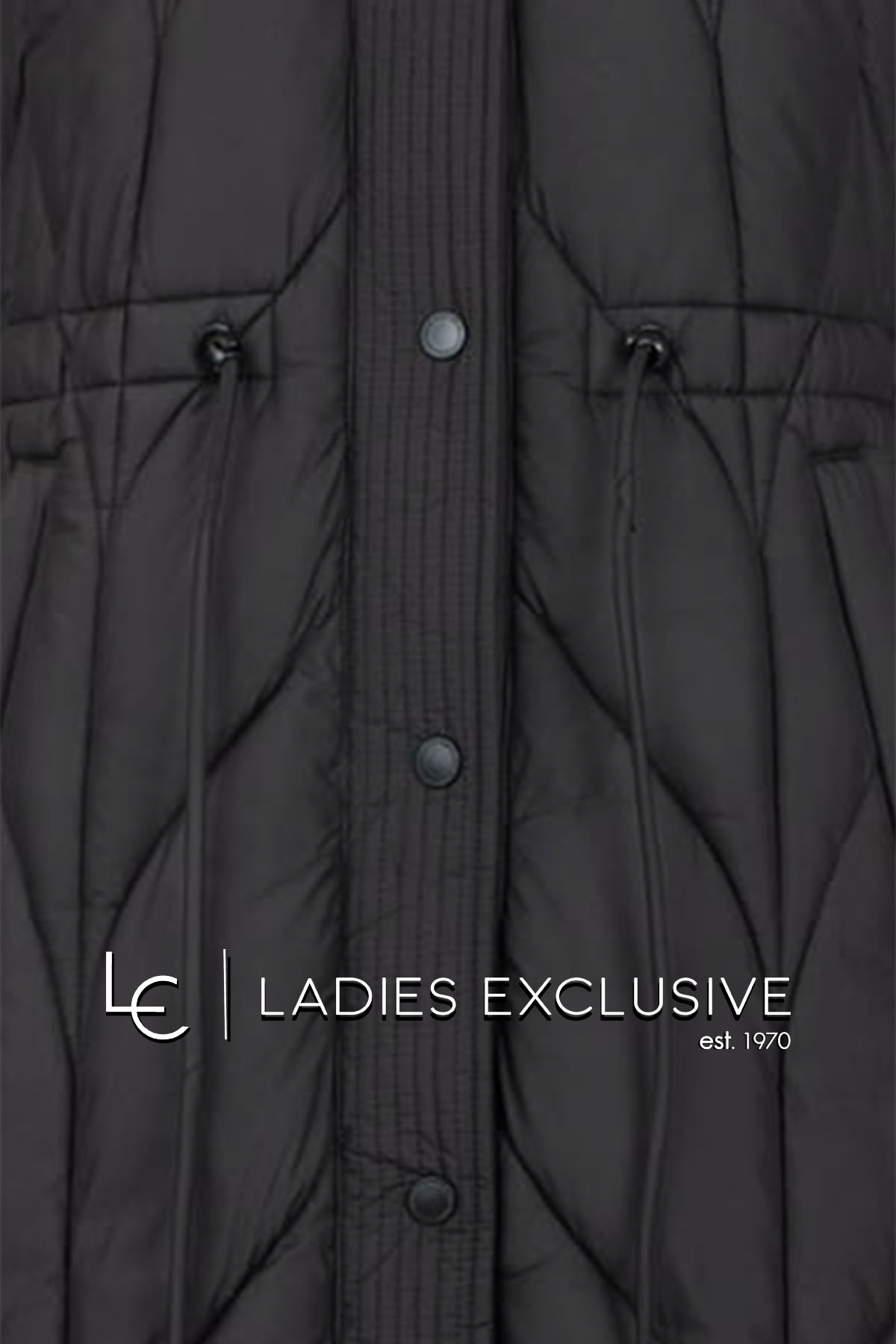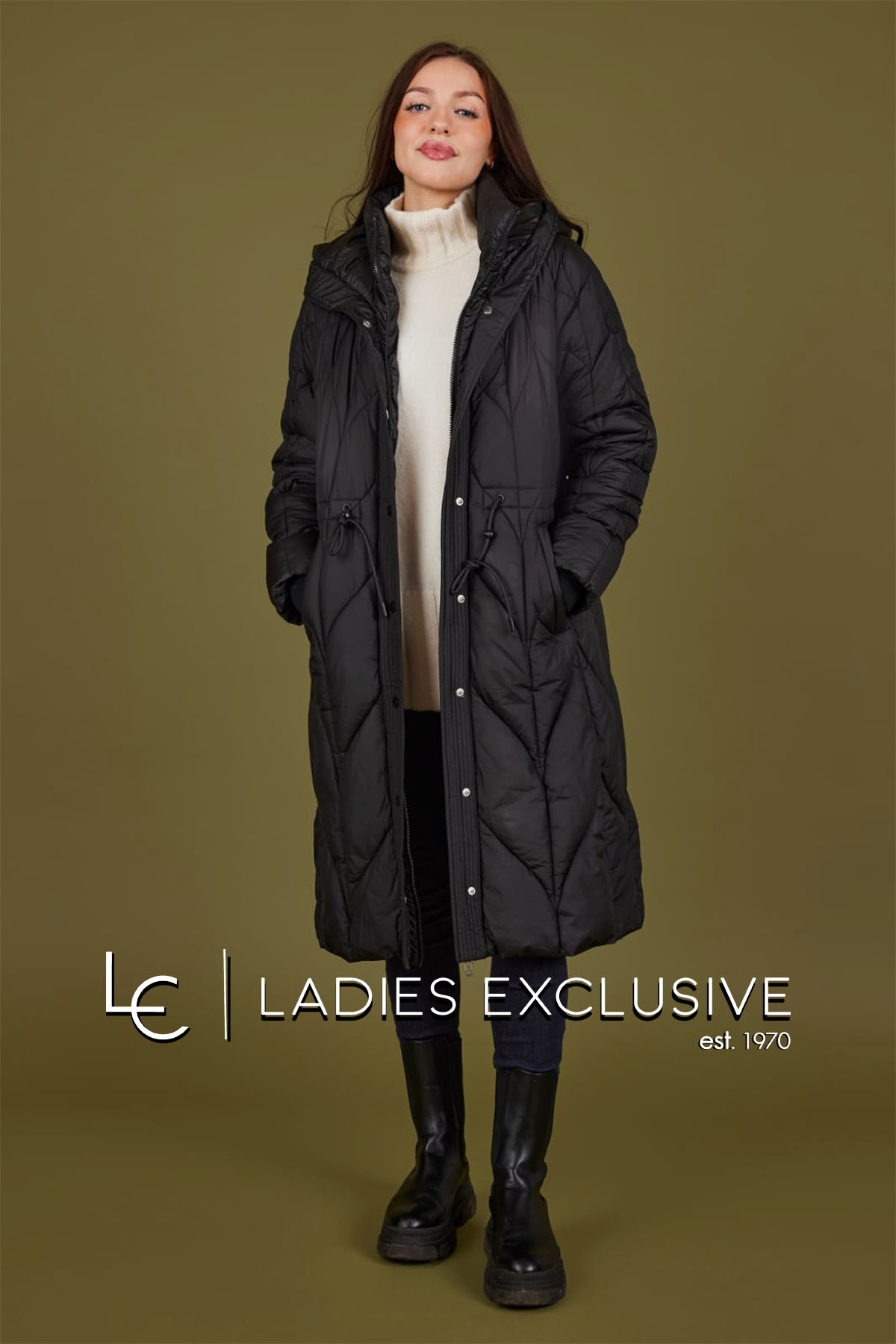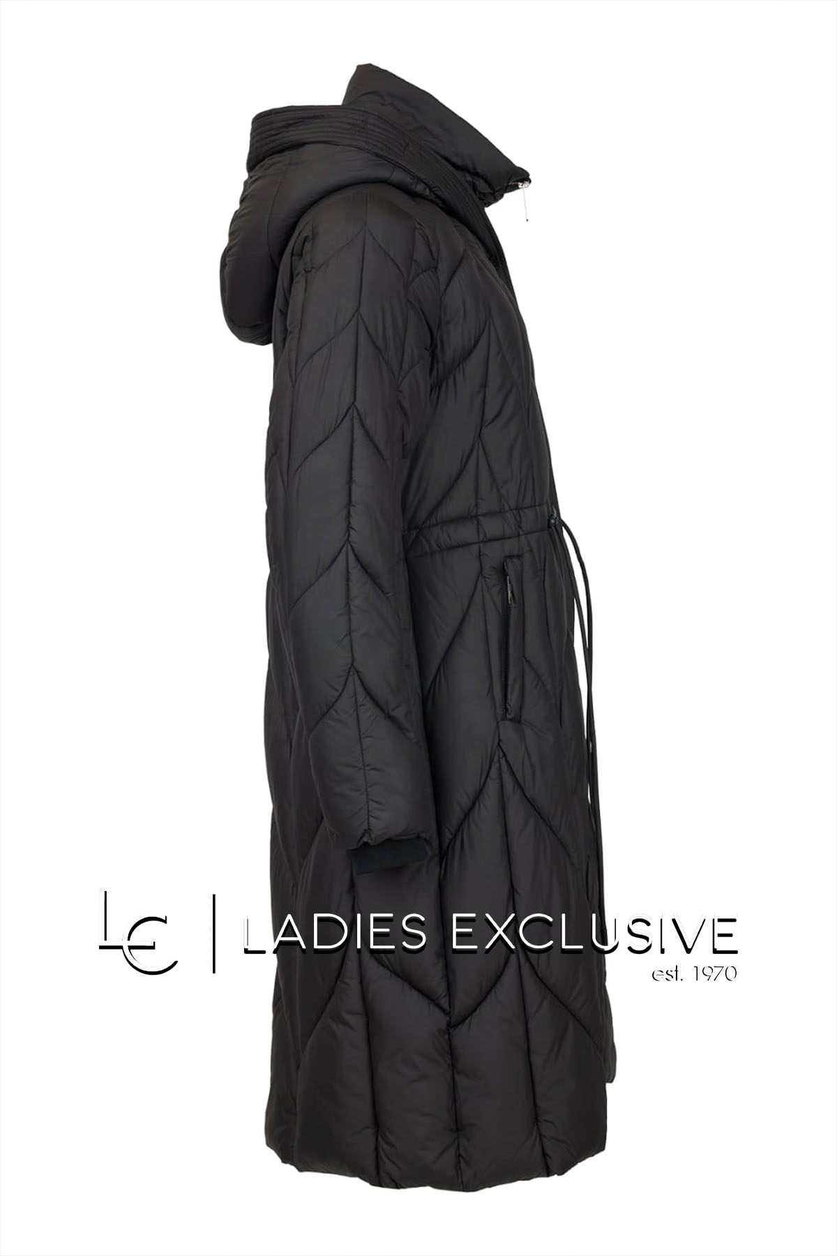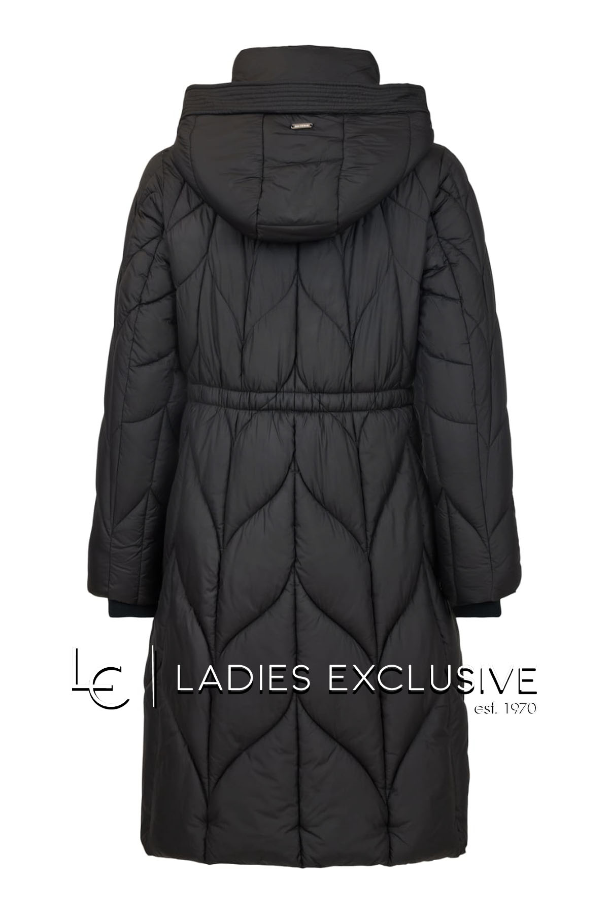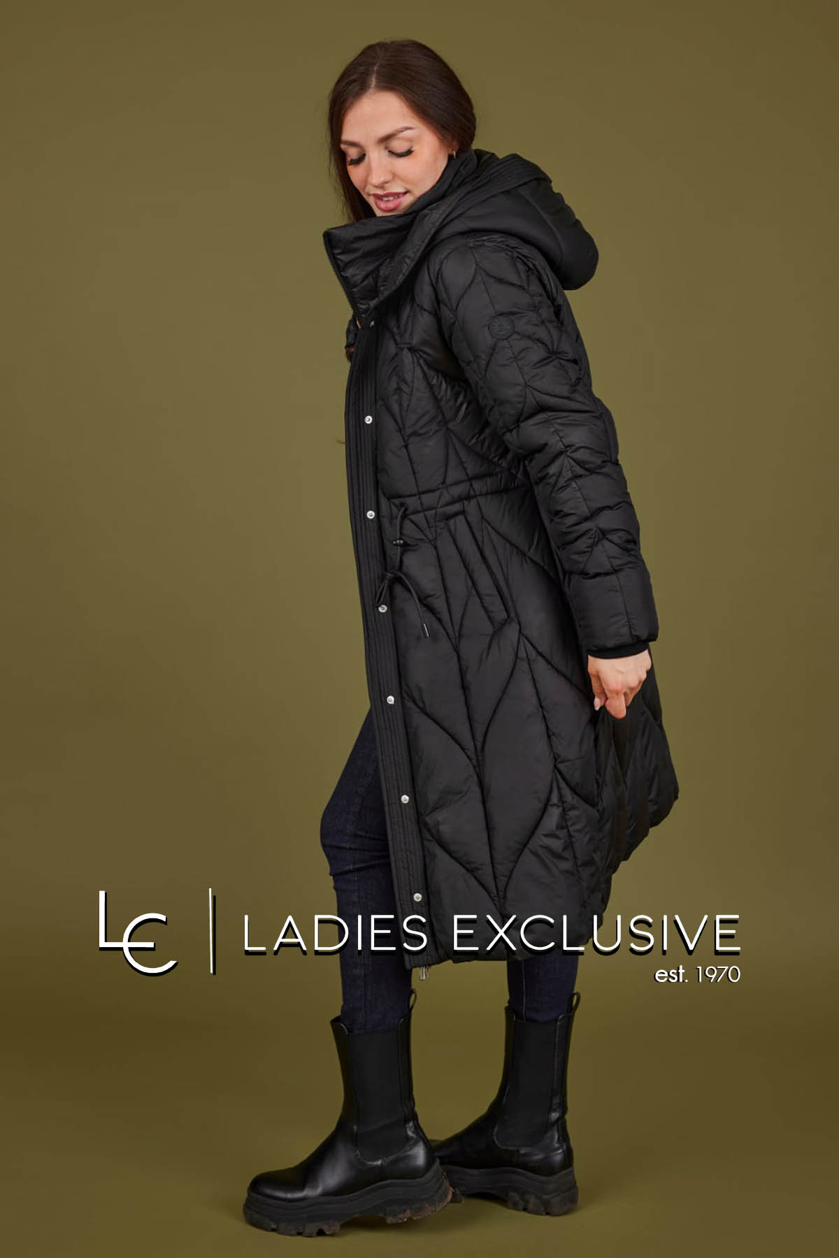 NORMANN Μπουφάν μαύρο καπιτονέ μεσάτο μακρύ με κουκούλα.