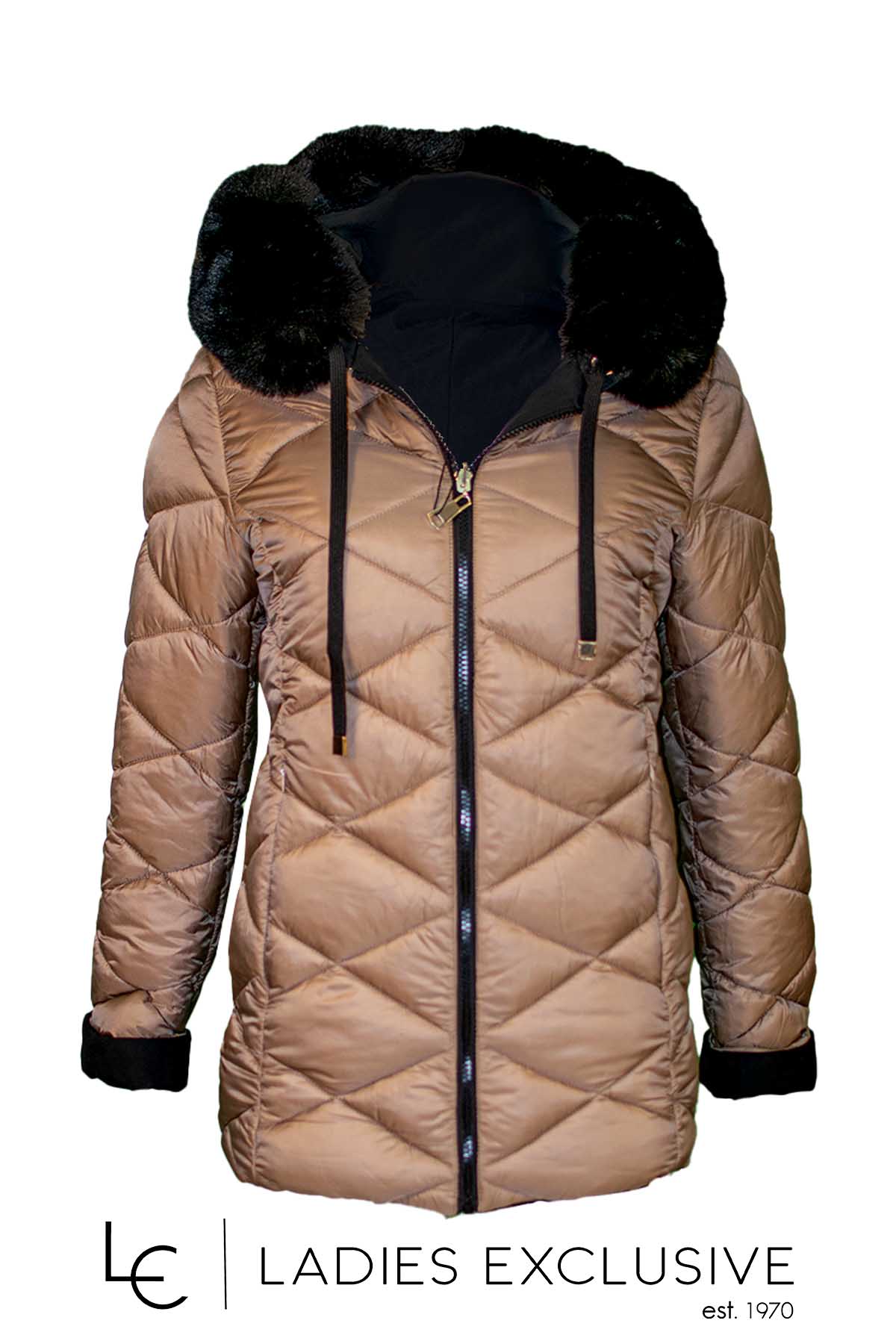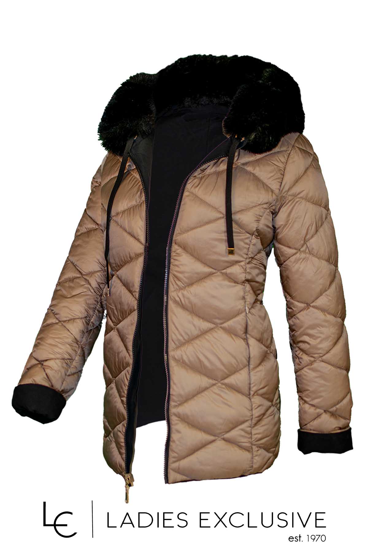 REVER Μπουφάν διπλής όψης. Από τη μια πλευρά είναι πούρο καπιτονέ και από την άλλη μαύρο. Η γούνα στην κουκούλα αφαιρείται.