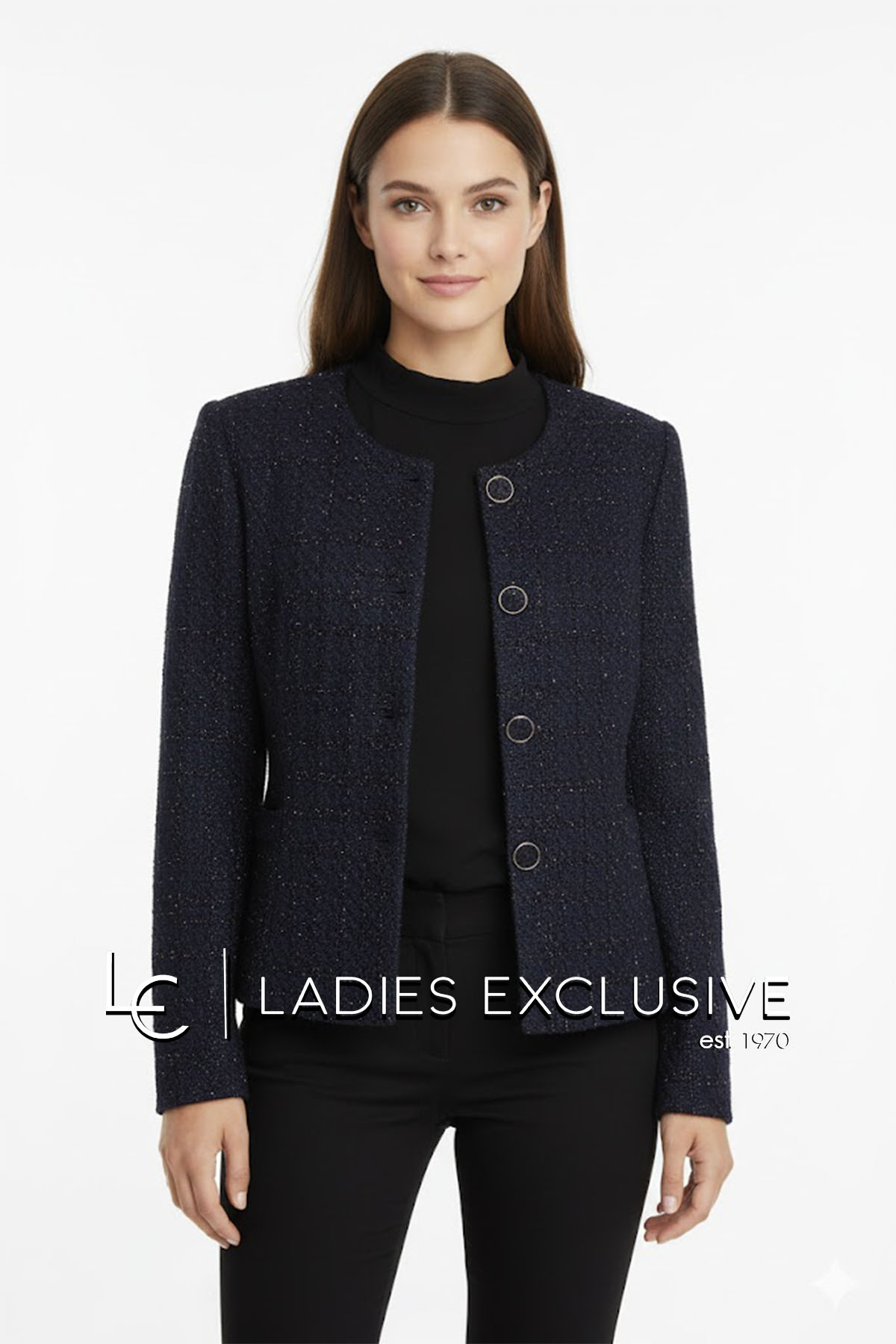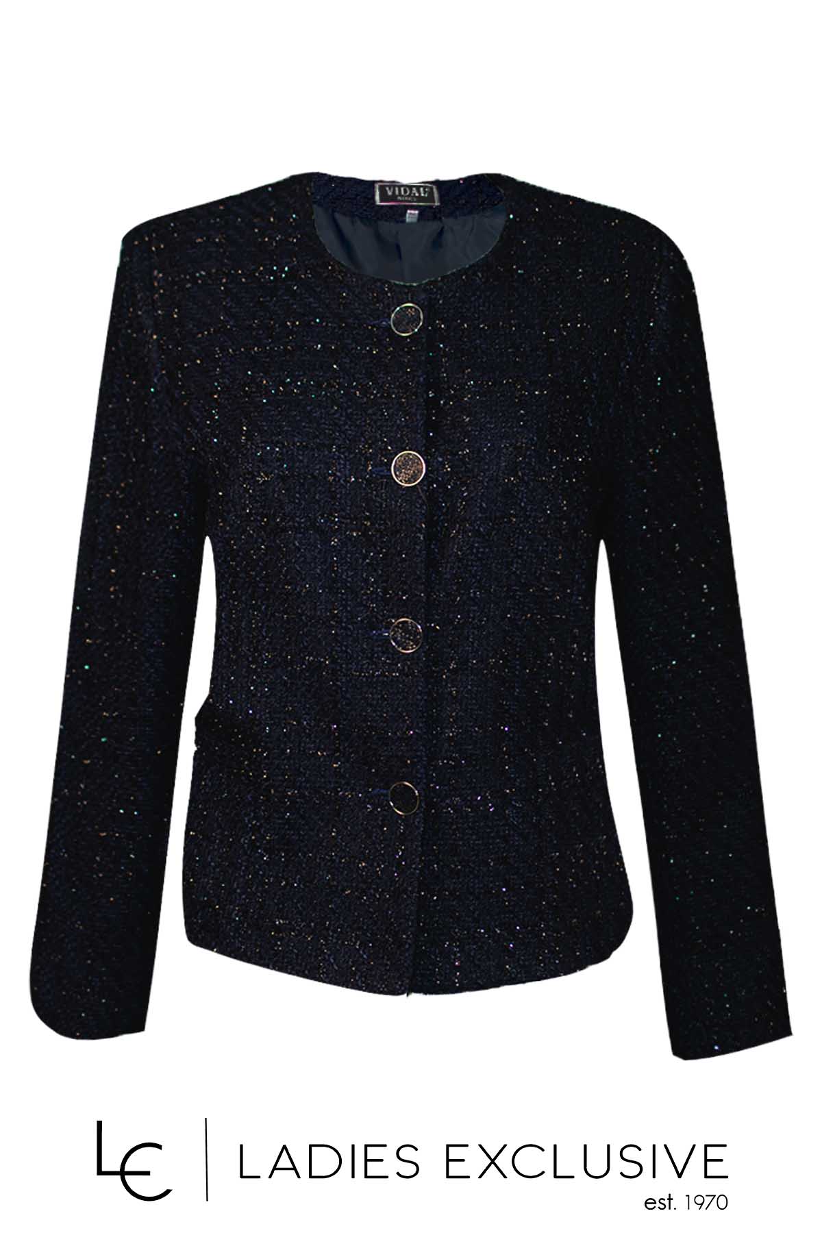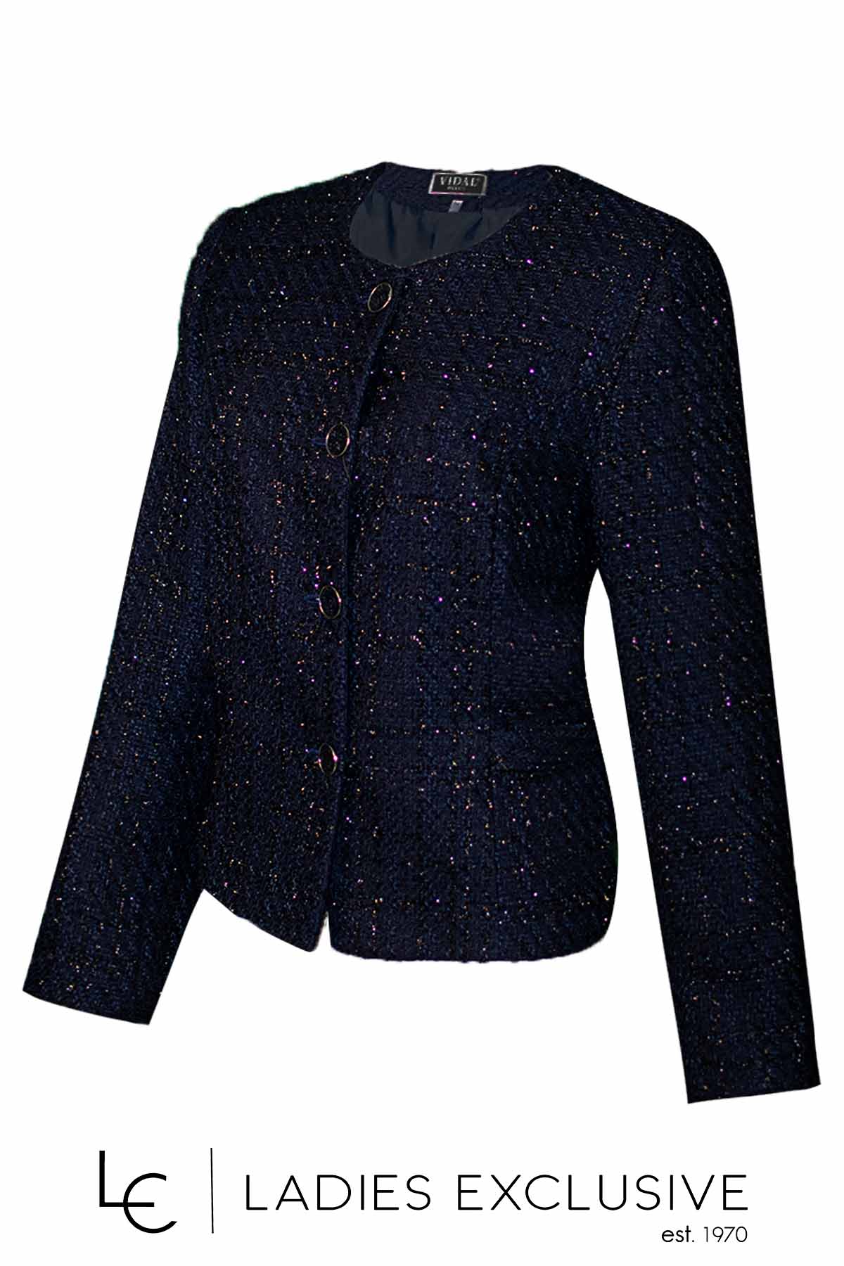 VIDAL Σακάκι μπλε τύπου σανέλ με ασημοκλωστή στην ύφανση.
