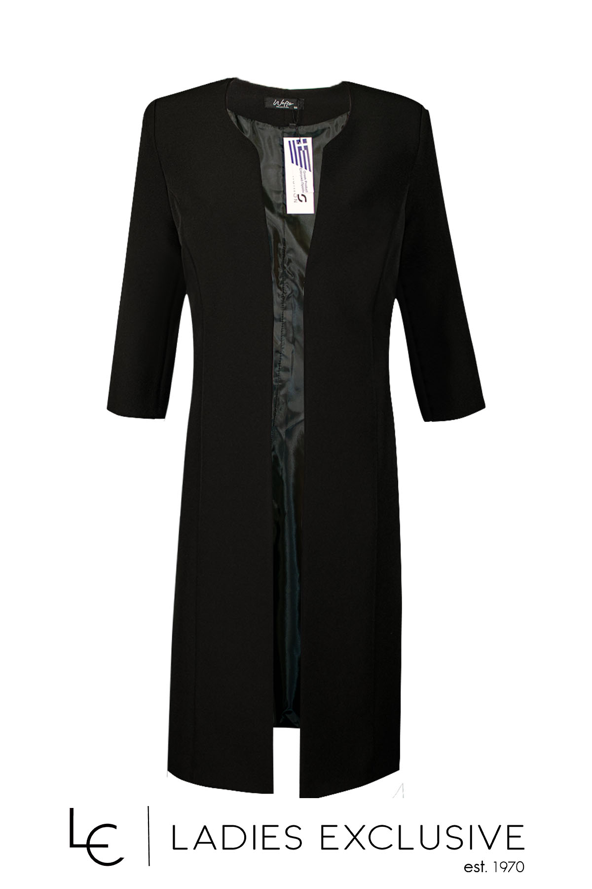 EFFECT Φόρεμα ασπρόμαυρο από διαγωνάλ ύφασμα ρηχτό με μανίκι 3/4.