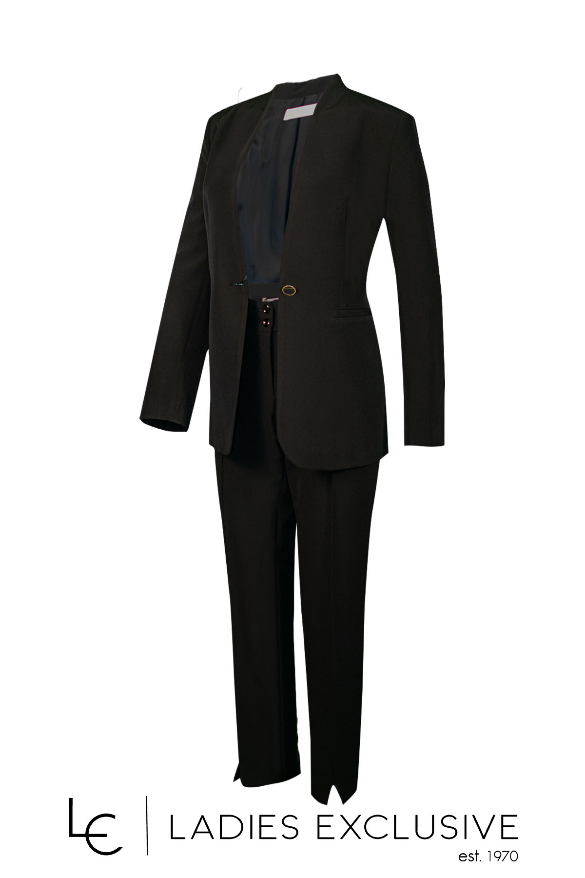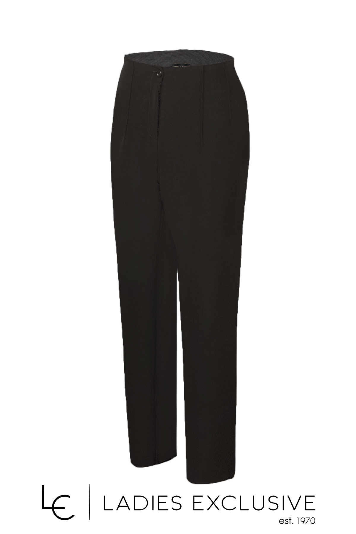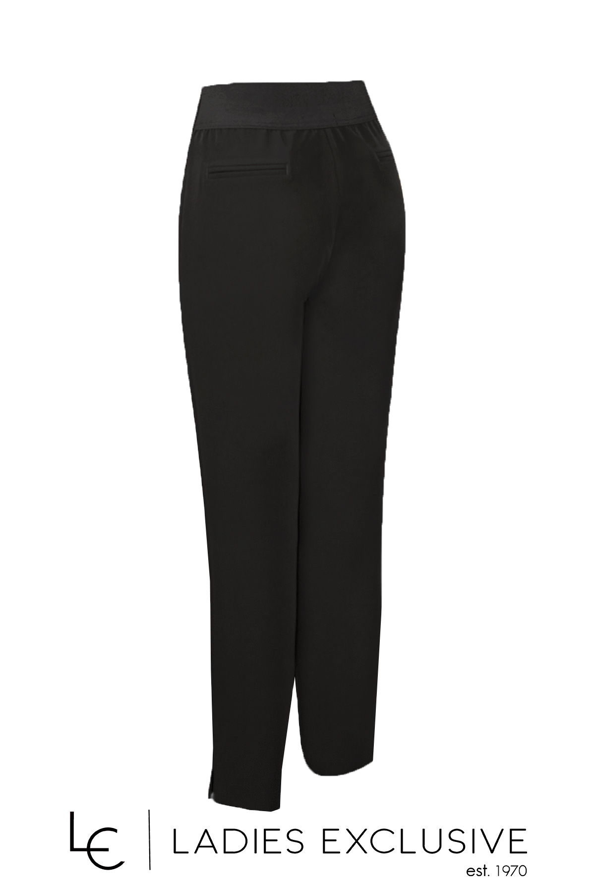 BELLA P. Παντελόνι μαύρο κρεπ με λάστιχο στη μέση και μικρό άνοιγμα στο κάτω μέρος. ΔΙΝΕΤΑΙ ΜΟΝΟ ΣΑΝ ΣΕΤ με το σακάκι με κωδικό 21252.0121.01107.01