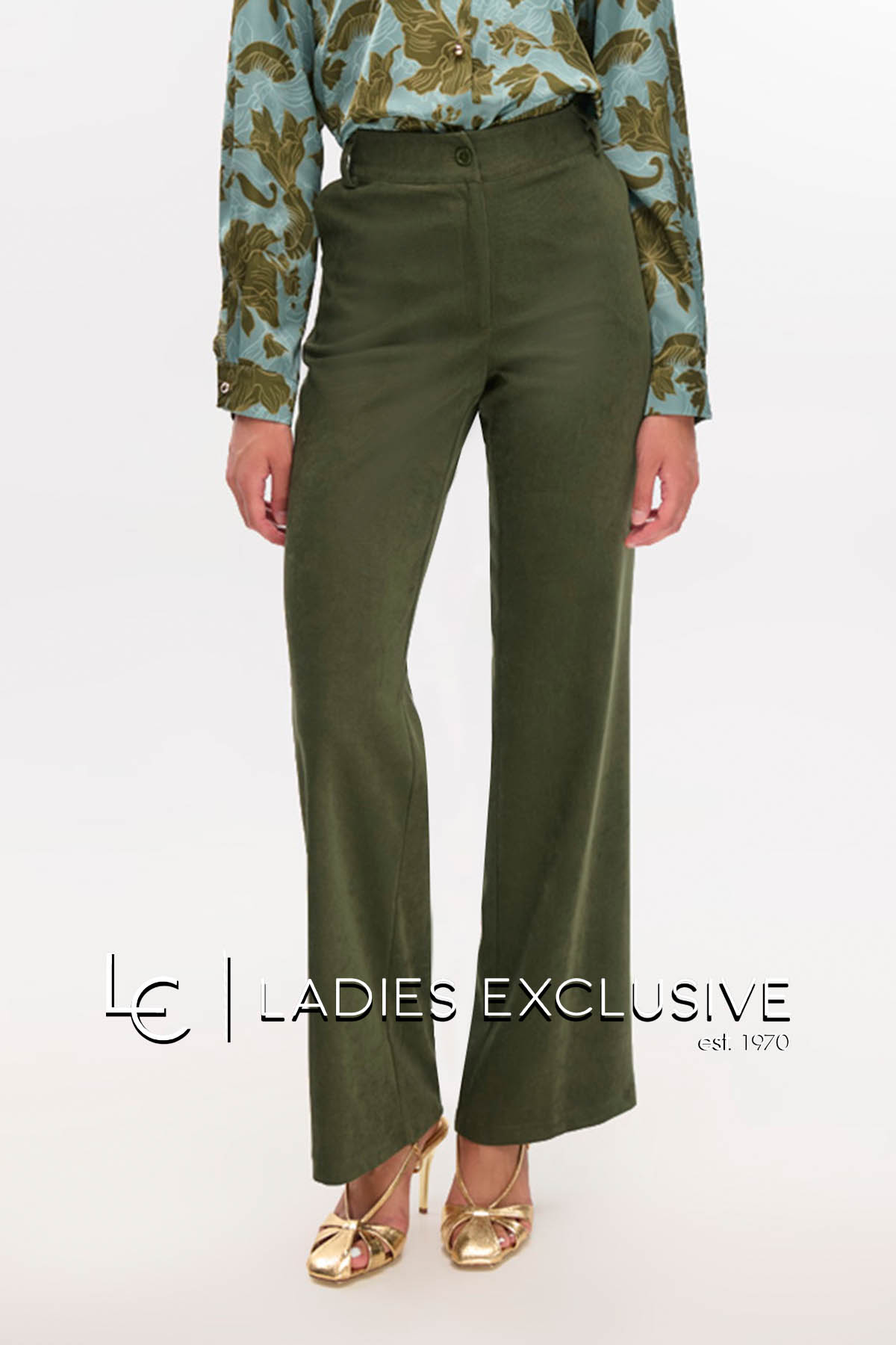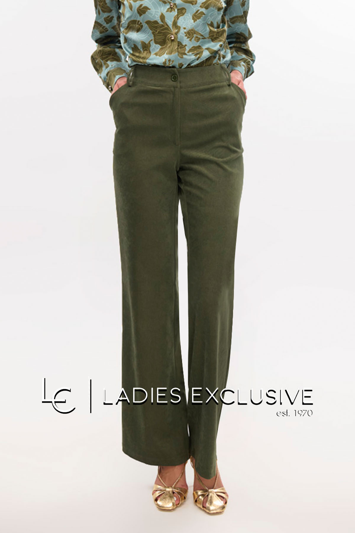 FIBES Παντελόνι πράσινο κοτλέ χιλιόριγο, με φαρδύ μπατζάκι. ΔΙΝΕΤΑΙ ΜΟΝΟ ΣΑΝ ΣΕΤ με το σακάκι με κωδικό 01-6105.04.