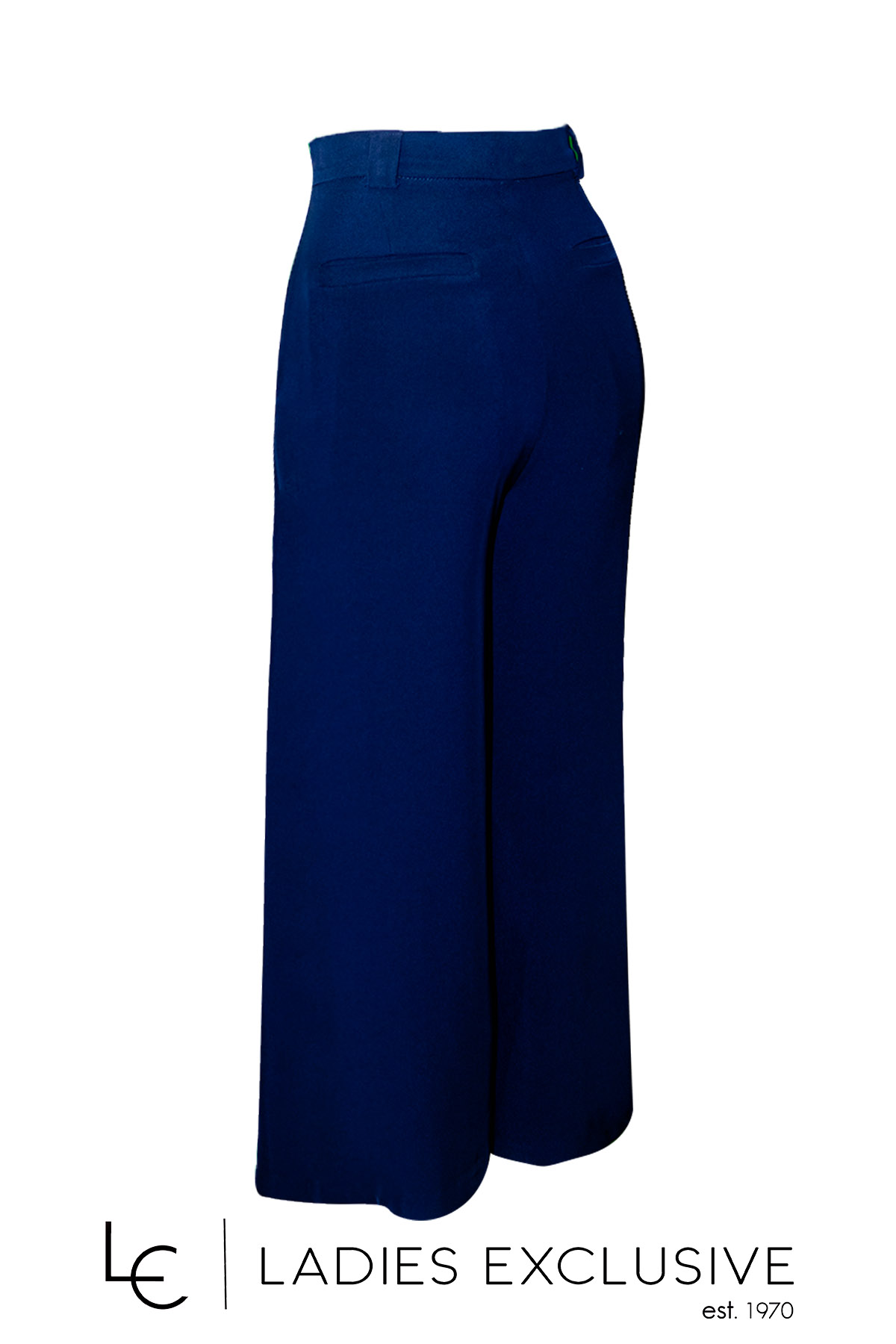LUCIFAIR Παντελόνι μπλε ζιπ κιλότ με πιέτες.