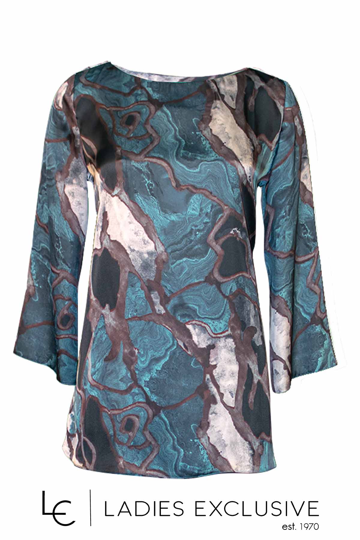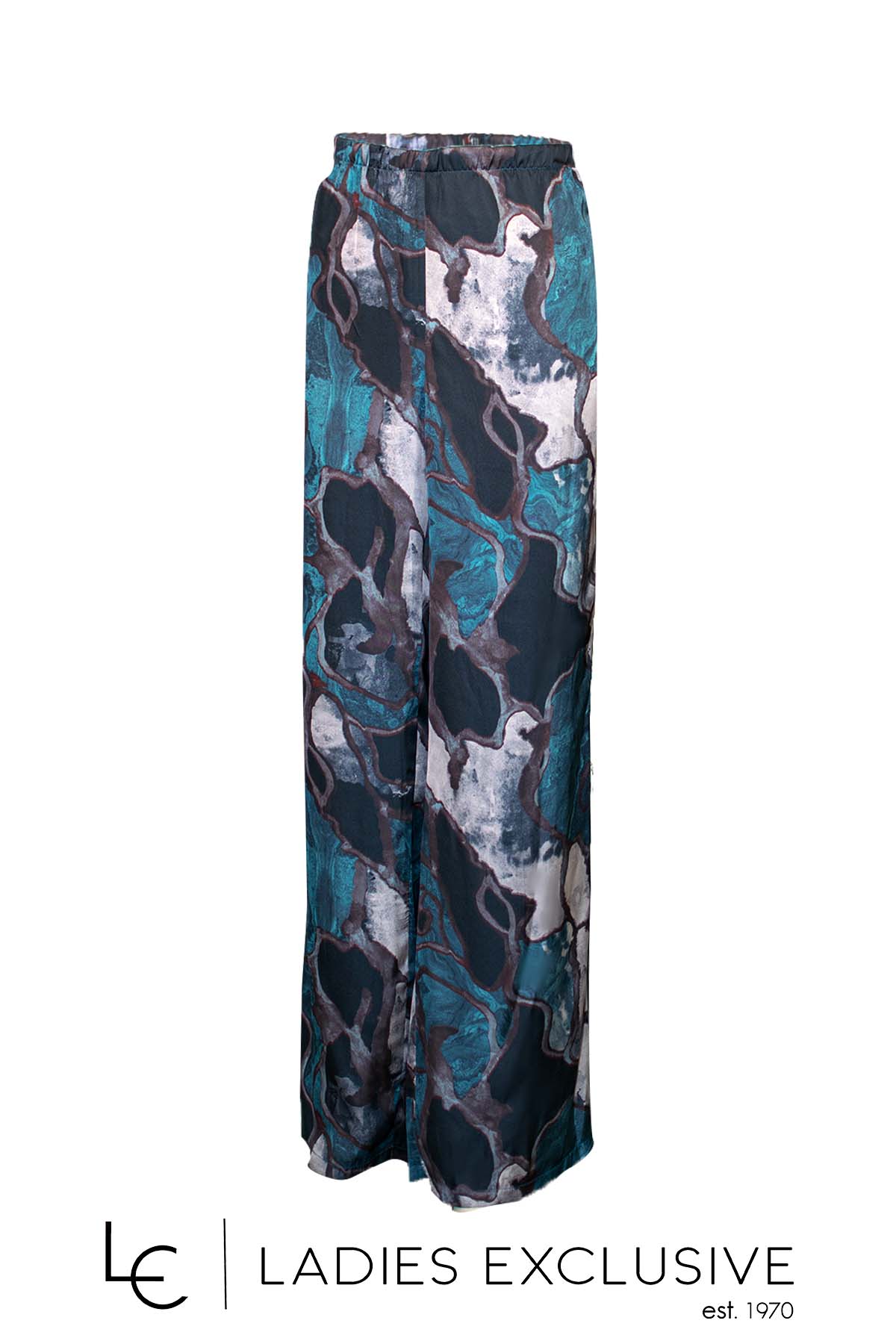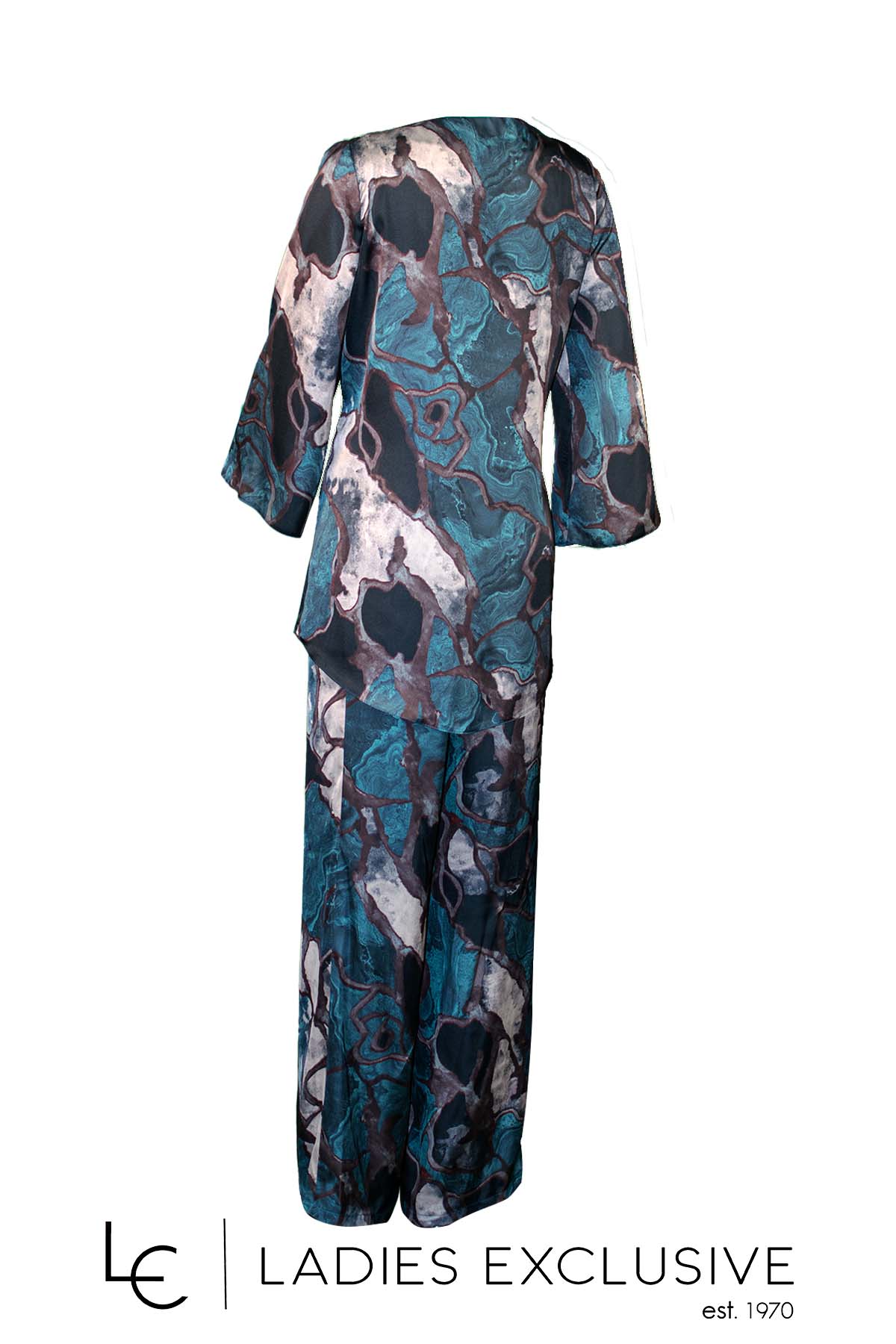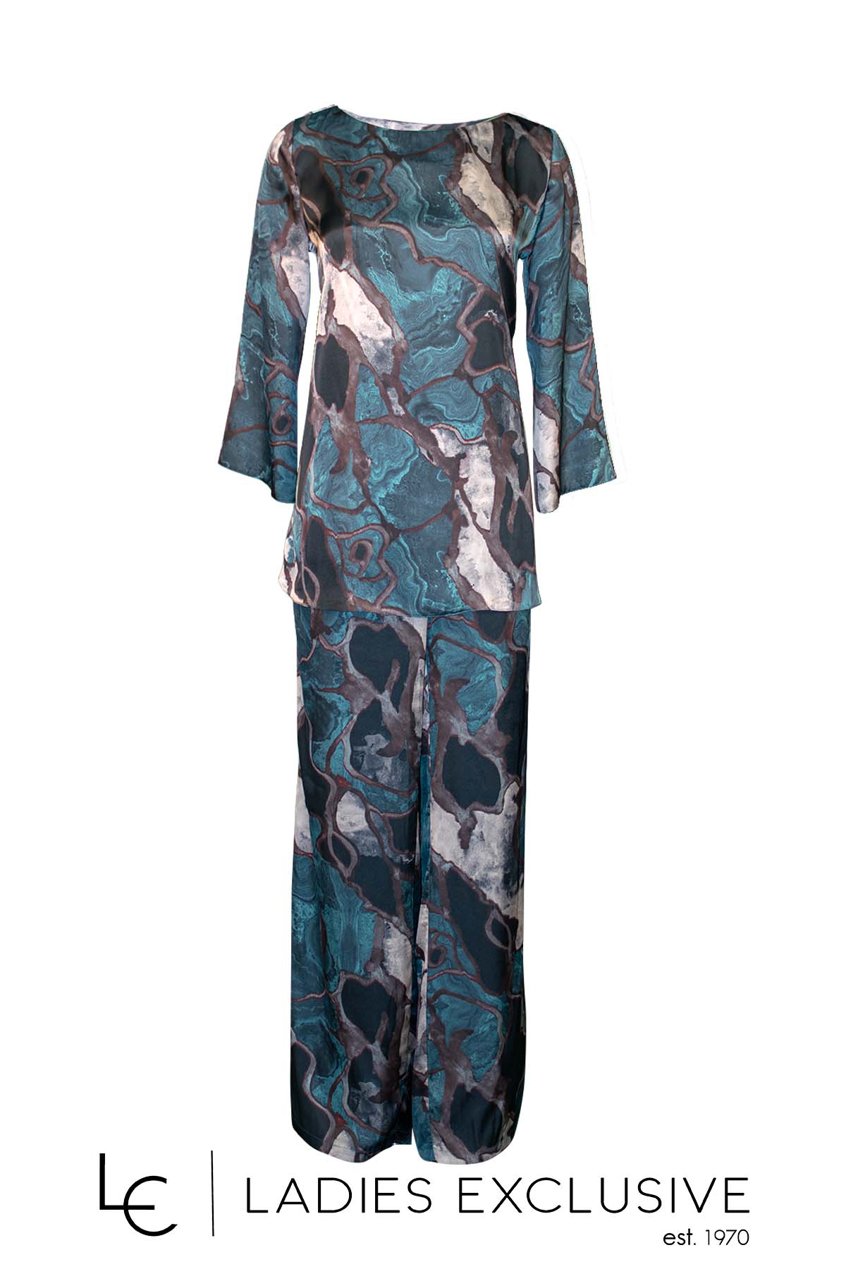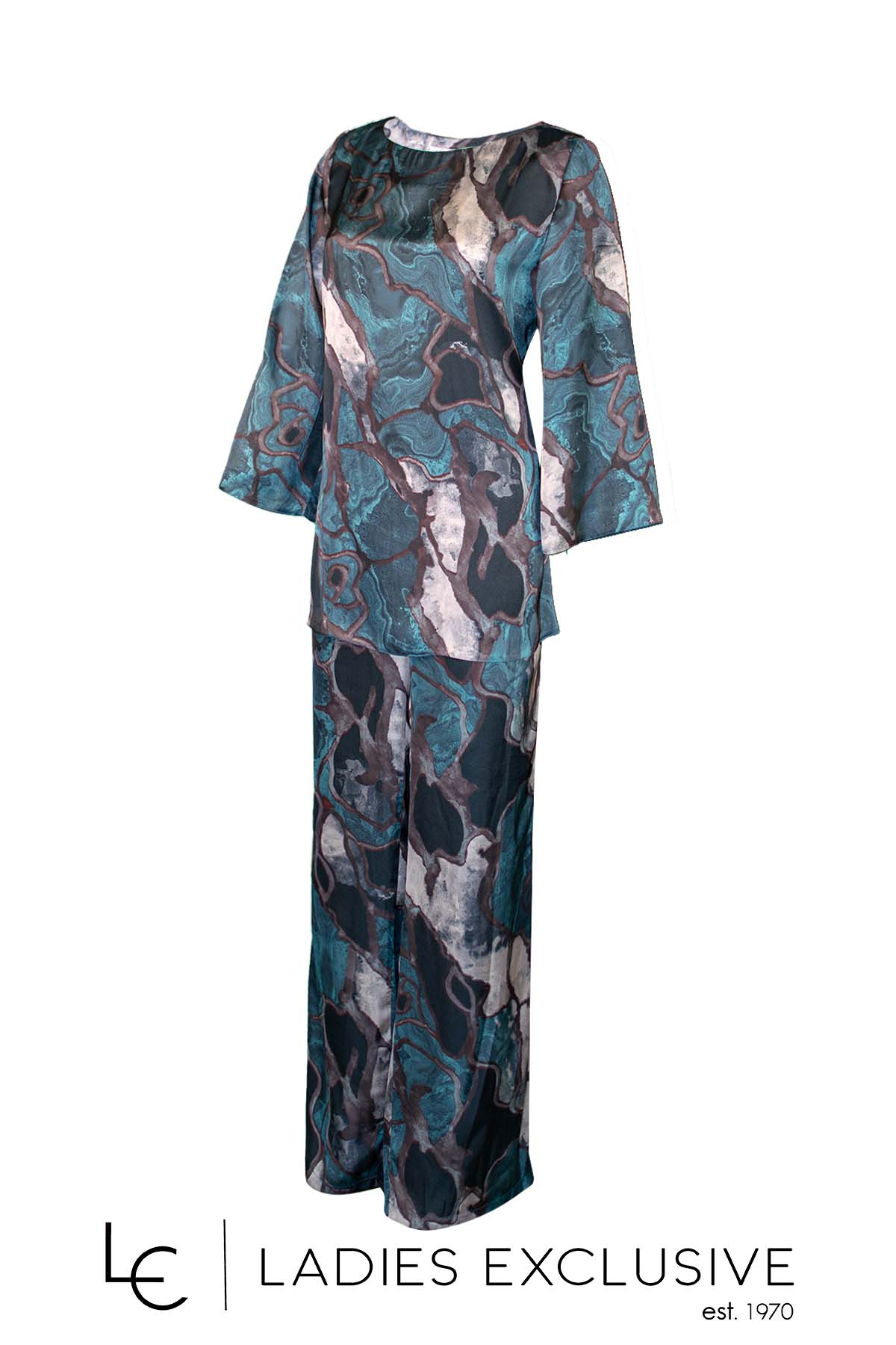 EFFECT Σετ 2 τεμαχίων εμπριμέ, που αποτελείται από μπλούζα σατέν σε άνετη γραμμή με φαρδύ μανίκι και παντελόνα με λάστιχο στη μέση.