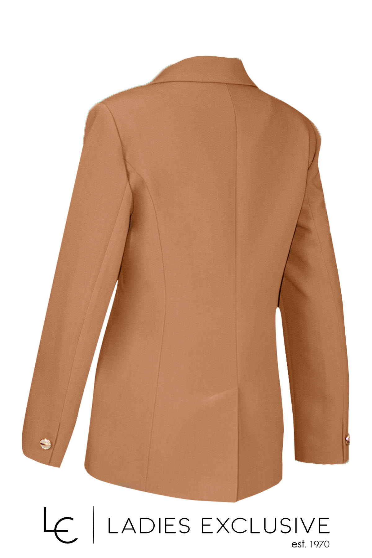 ESTEL Σακάκι καμηλό με πέτο γιακά με μονό κουμπί. Γίνεται σετ με το παντελόνι με κωδικό 08505-00.19.
