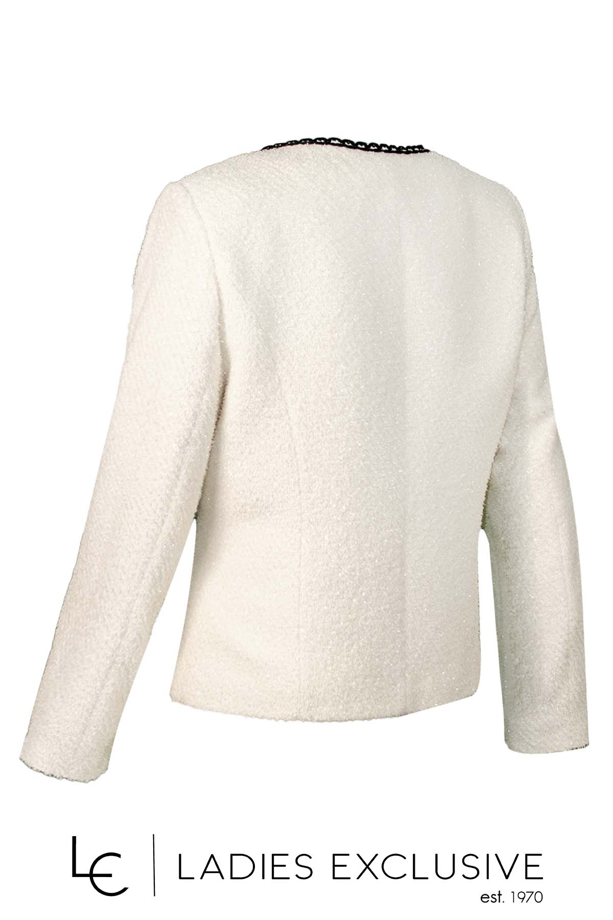 ESTEL Σακάκι εκρού μπουκλέ με λεπτομέρεια μαύρη τρέσα. ΔΙΝΕΤΑΙ ΜΟΝΟ ΣΑΝ ΣΕΤ με το φόρεμα με κωδικό 08553-00.24.